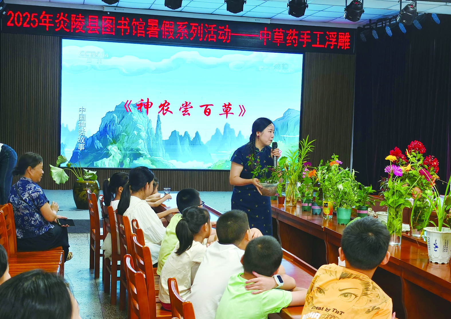 近日,炎陵县图书馆开展暑期“传承炎帝文化 寻觅非遗手工”中草药手工浮雕活动,带领青少年感受中华医药文明。活动以“神农尝百草”开篇,引导孩子们通过观察、闻辨、触摸掌握药材知识。随后,孩子们化身“小药师”,用陶泥作底,嵌入紫苏、薄荷等本草,创作出古朴生动的中草药浮雕作品。