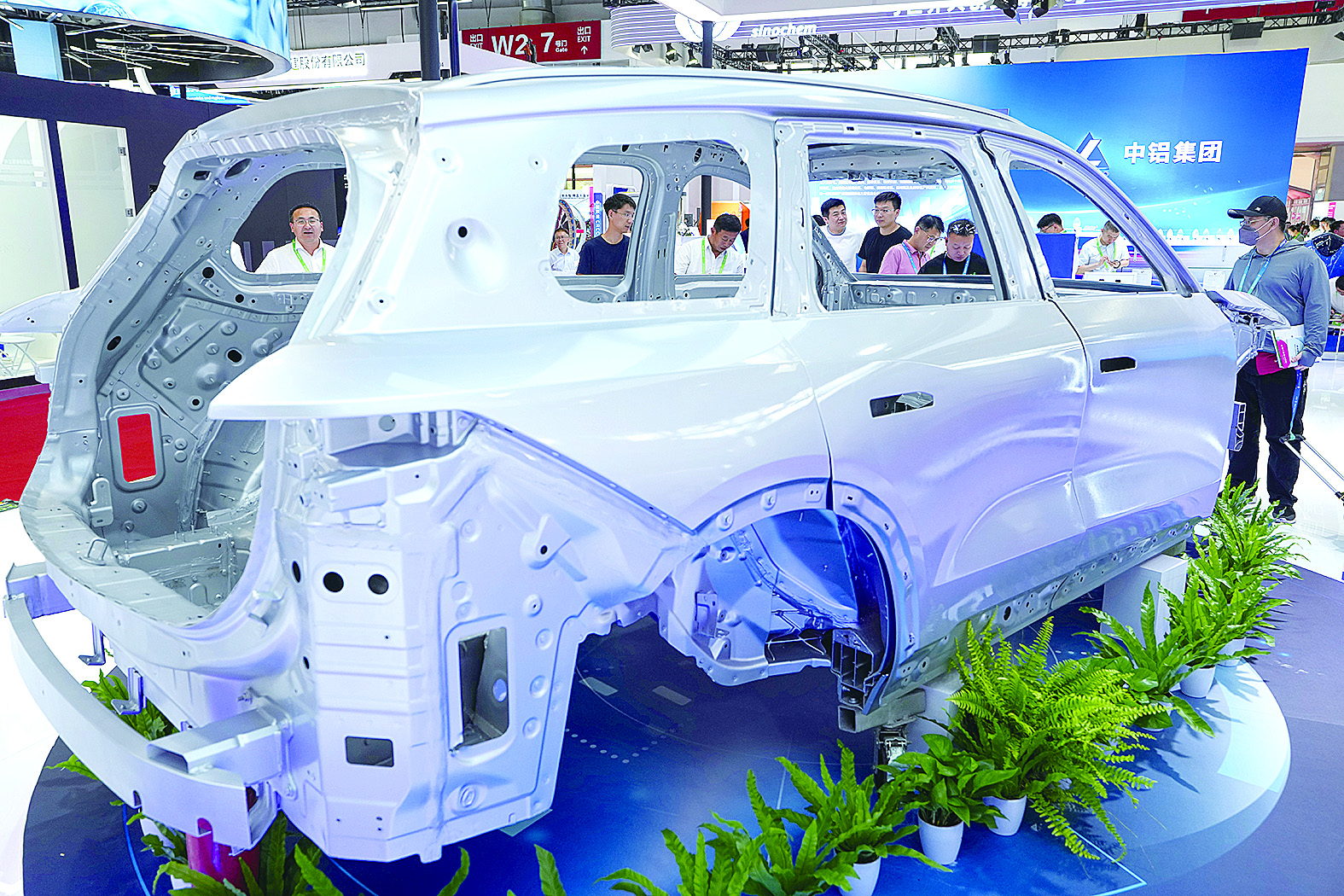 7月16日,在先进制造链展区中铝集团展台,参观者参观铝制新能源汽车白车身和其他铝制部件。 在第三届中国国际供应链促进博览会设置的智能汽车链展区,30余家中外企业和机构集中展示产业链上中下游的关键技术和产品,从核心原材料、关键元器件到三电系统、智能网联,再到纯电、混动等不同技术路线的智能汽车产业链,生动呈现产业协同创新发展的成果。 除了智能汽车链展区,先进制造链和数字科技链展区也展出与新能源汽车相关的产品和技术应用。 在链博会上,我们感受到中国新能源汽车产业与世界“链接”,共进共赢。