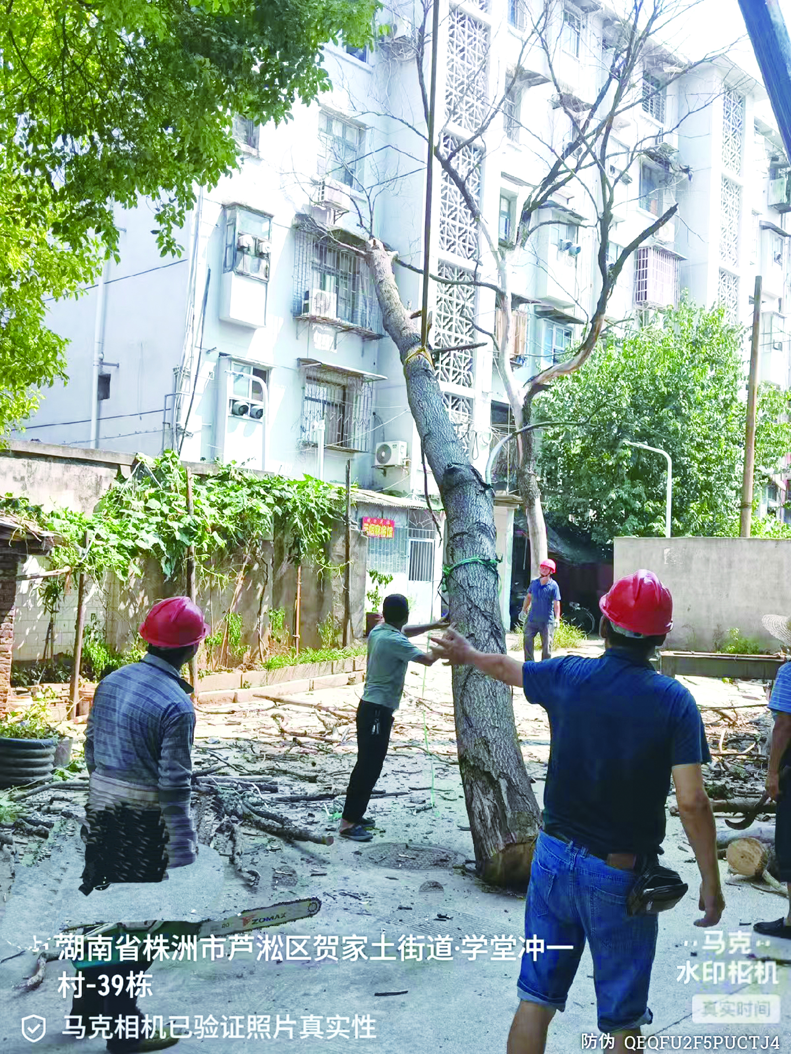 7月19日下午,芦淞区园林绿化中心10名党员、志愿者顶着炎炎烈日,来到贺家土街道南苑小区,动用高空作业车将小区内枯死老化树木,进行砍伐清理,避免雷雨风暴天气发生倒树、断枝伤人砸车等安全风险。