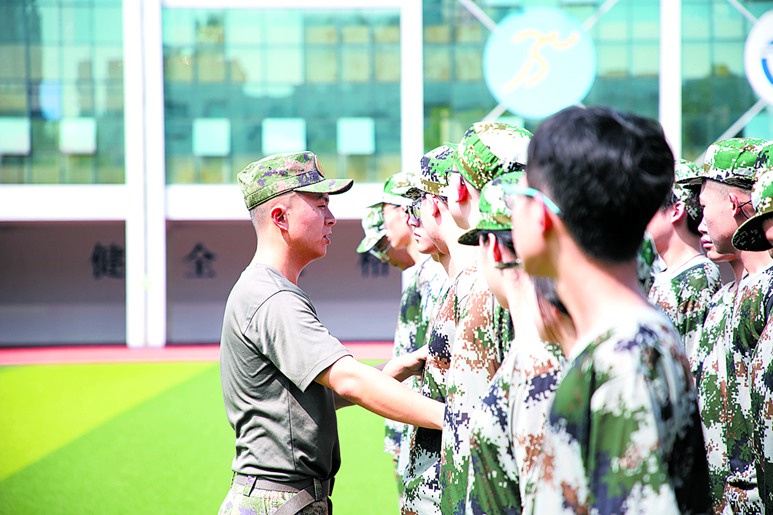 在教官的带领下,同学们整齐列队。虽然烈日当空,但同学们不畏酷暑,严格执行每一项训练动作,口号嘹亮,步伐整齐,展现出昂扬向上、坚忍不拔的精神风貌。