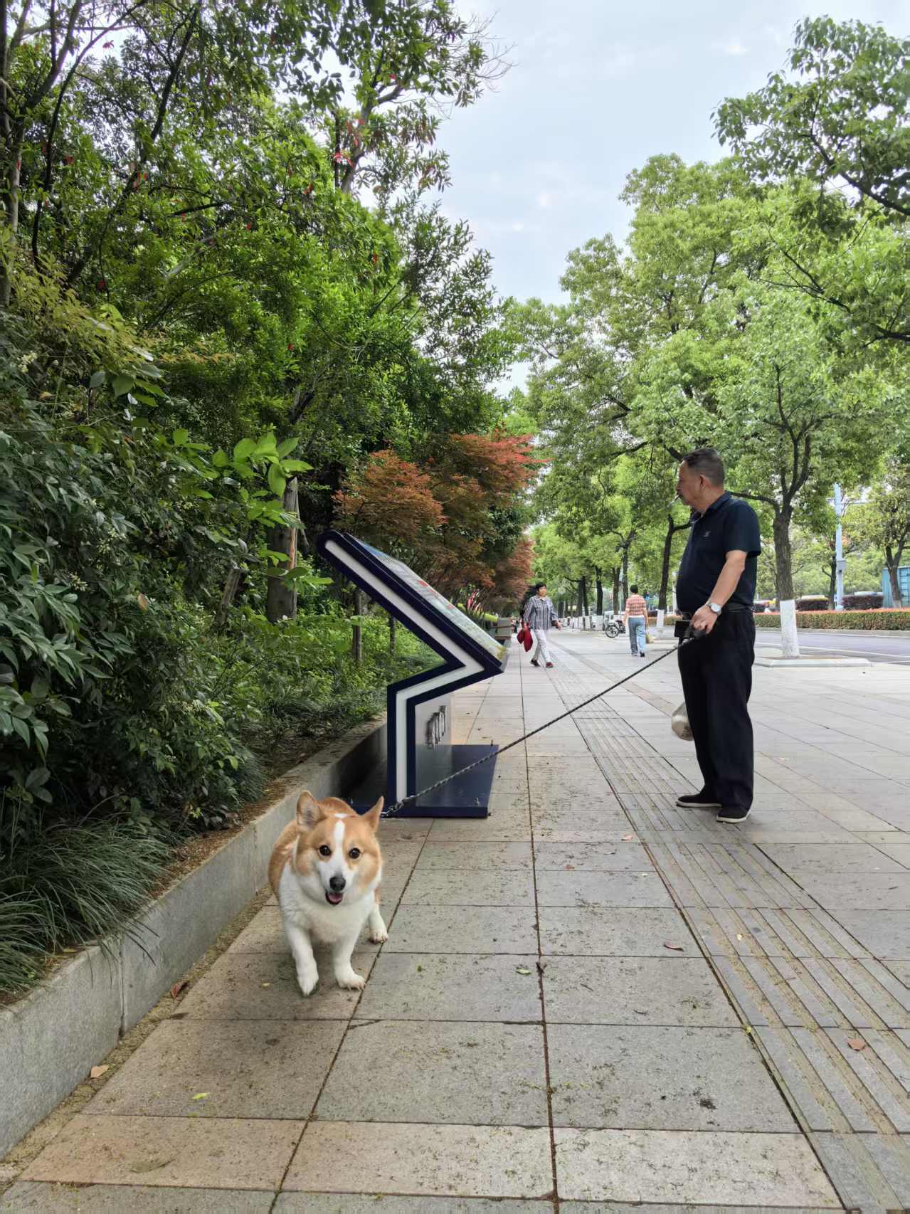 天元区天台路上,一位市民牵绳遛狗。记者/赖杰琦 摄