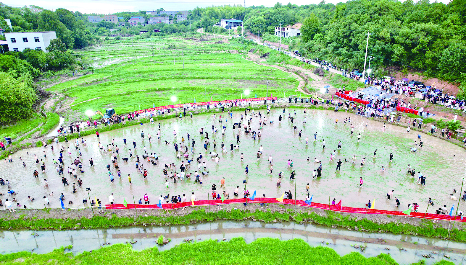 “群丰六点半”系列活动之水田抓鱼大赛现场。 记者/杨如 摄