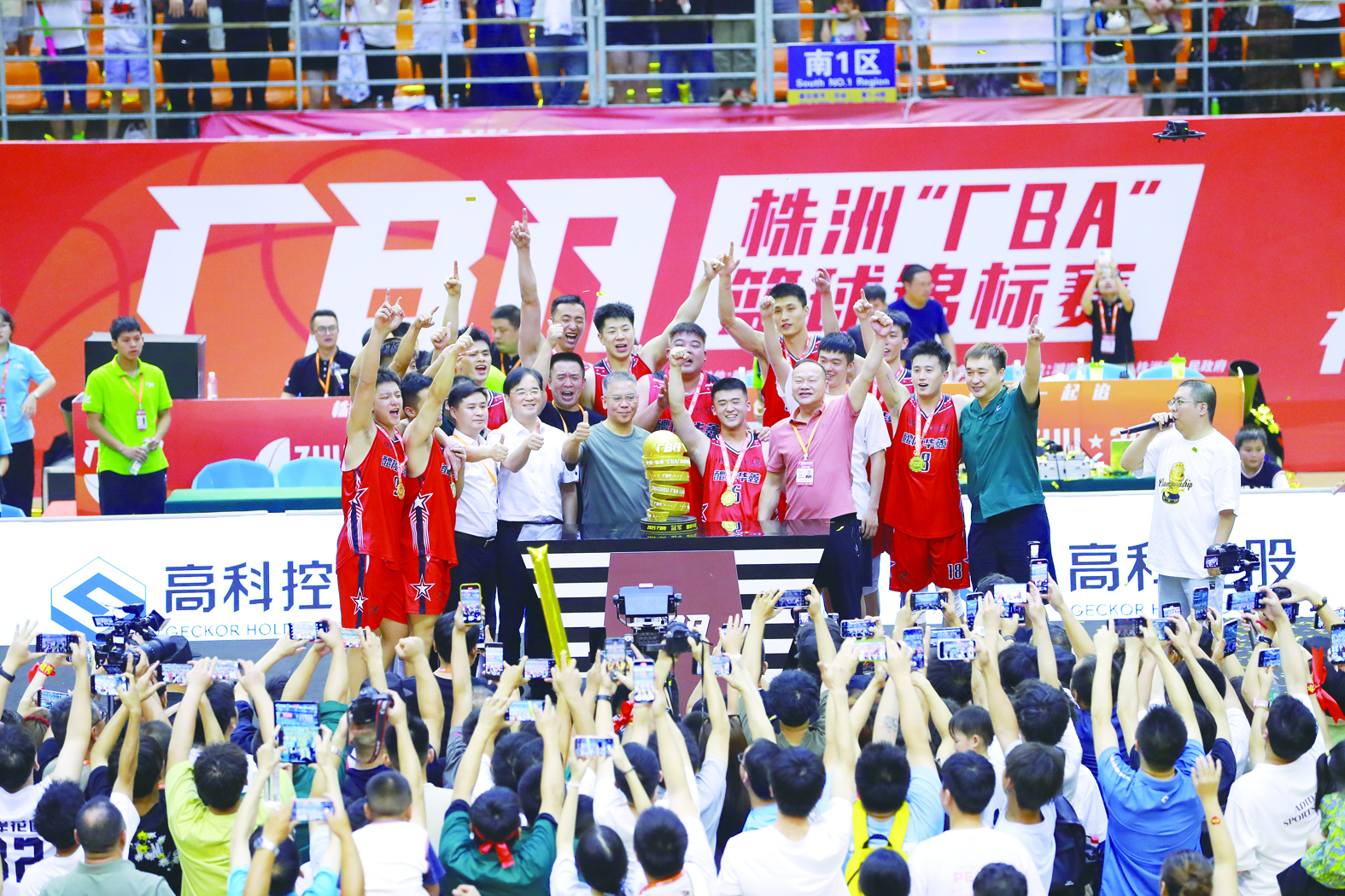 7月27日晚,醴陵华鑫队获得2025年“厂BA”冠军金杯。通讯员/罗青 摄