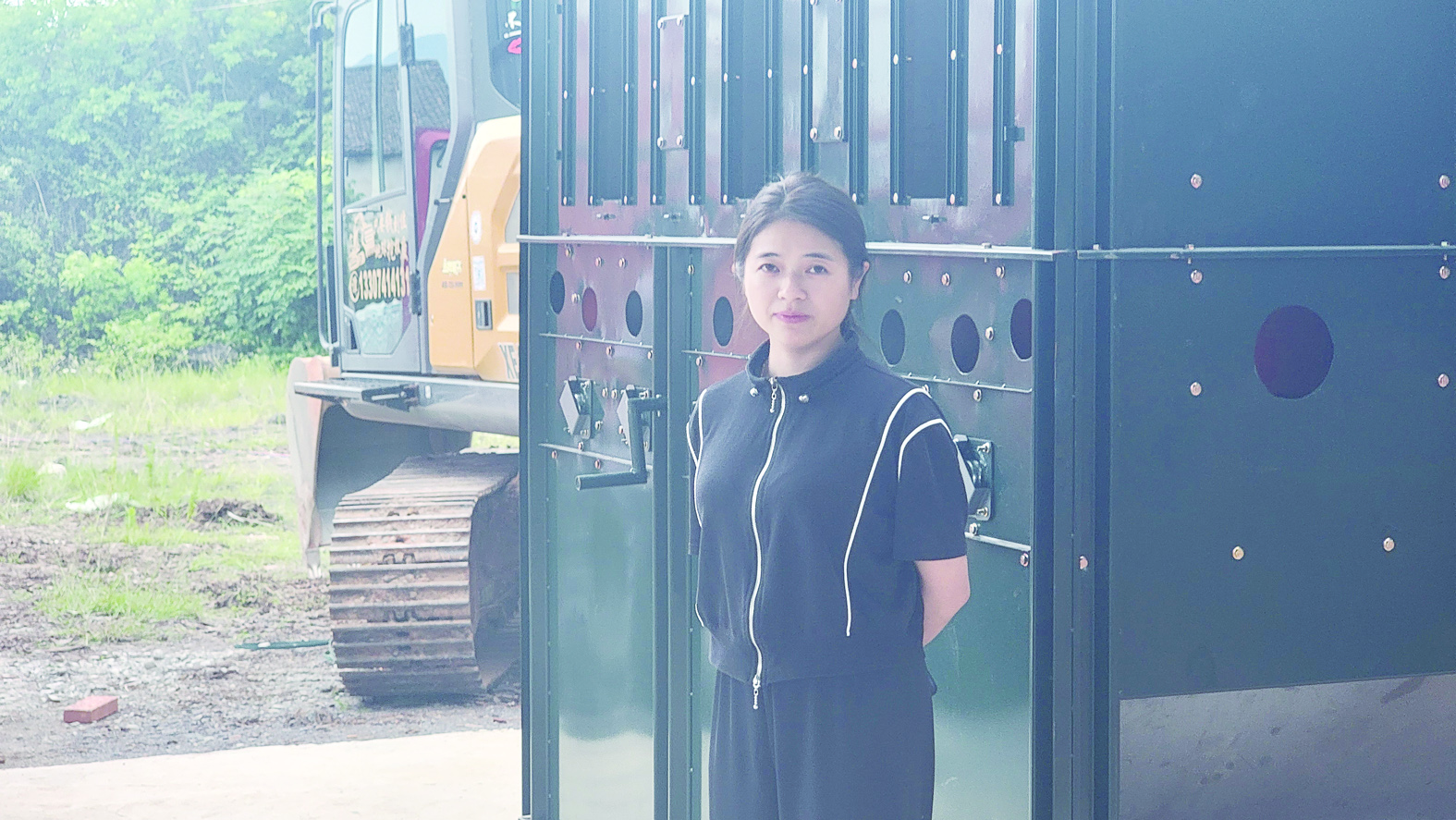 樊莹站在厂区内。受访者供图