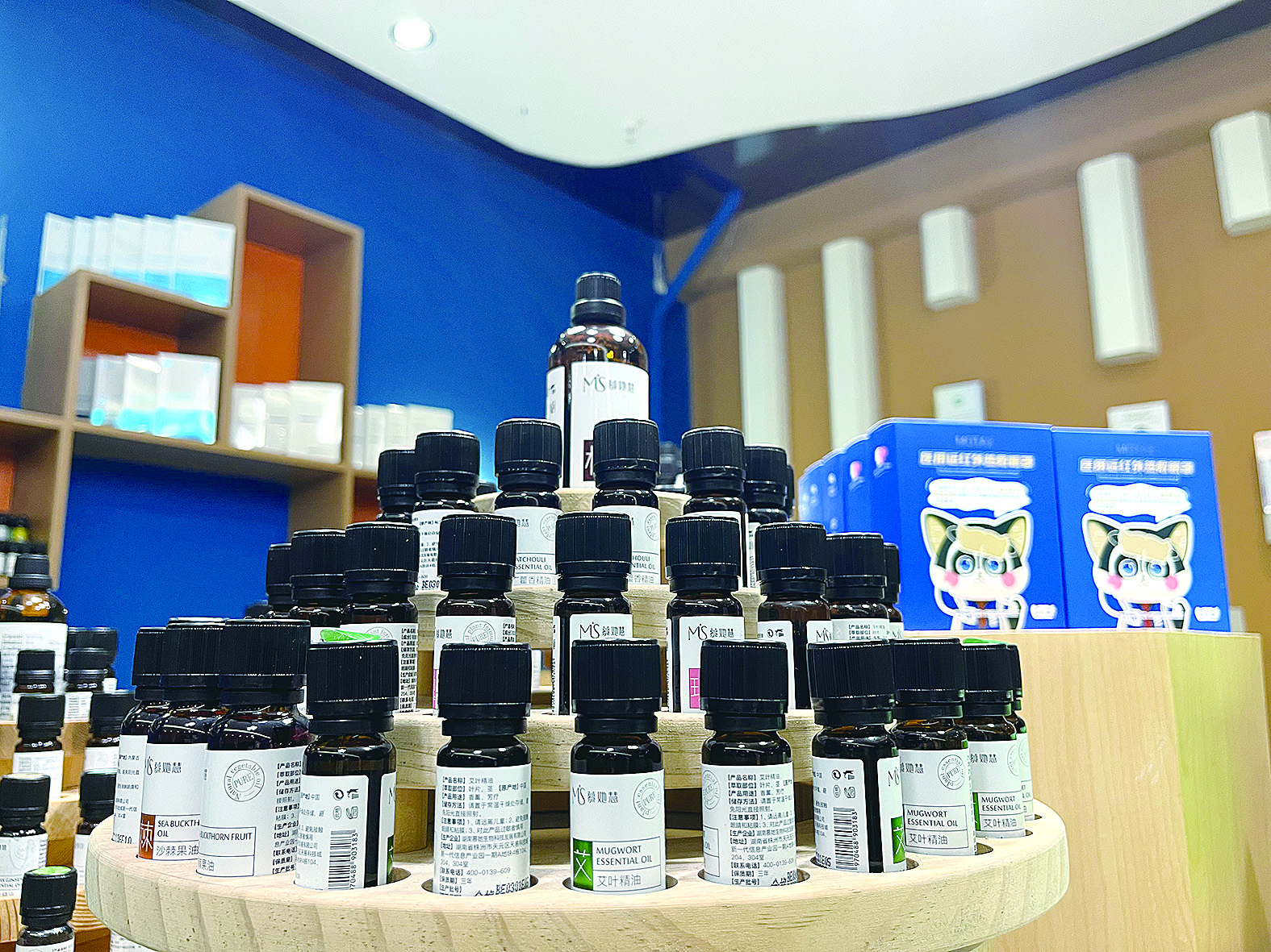图为该公司推出的精油类产品。 记者/潘东晓 摄
