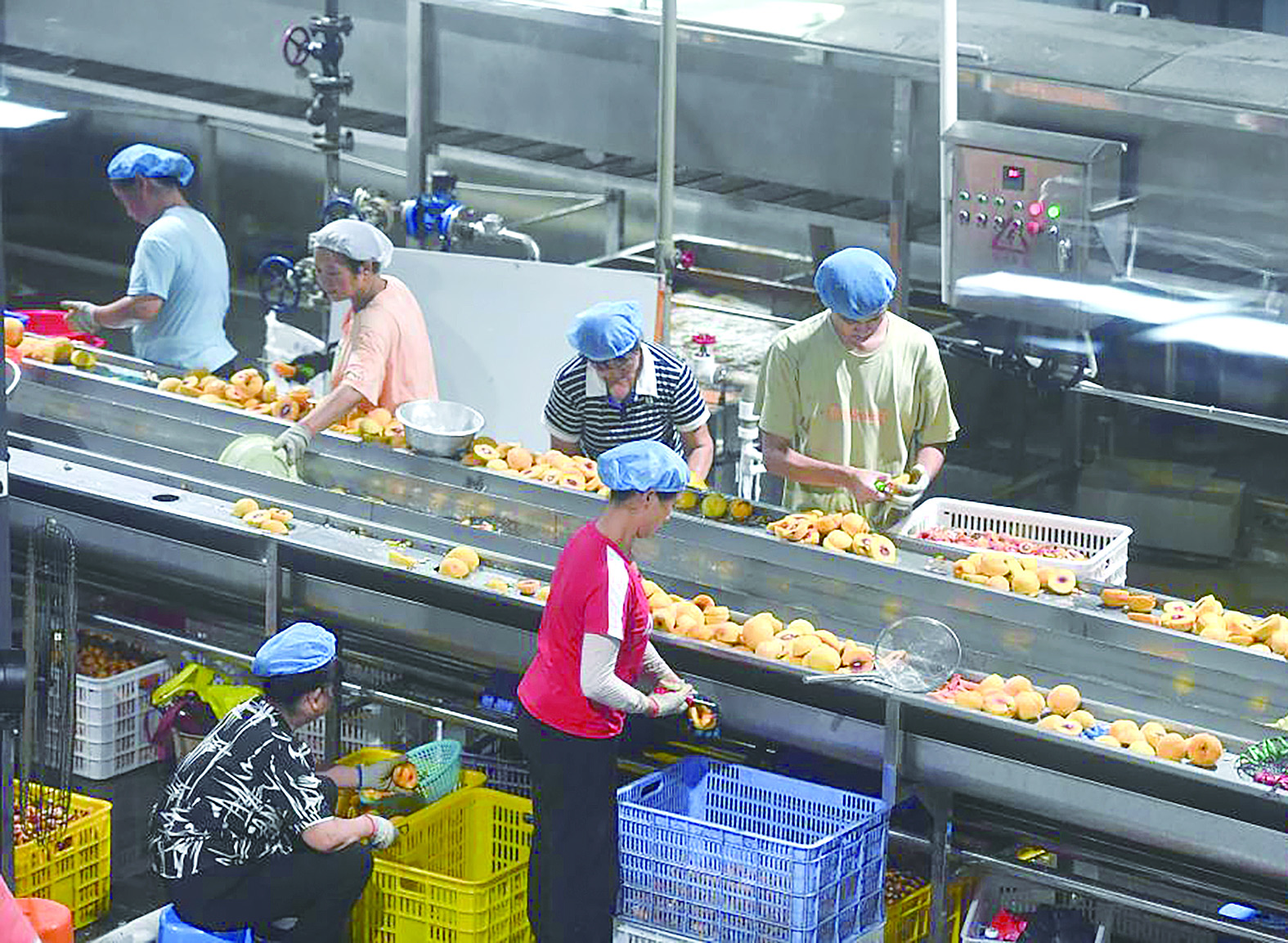 炎陵娜妹子黄桃罐头生产车间。 炎陵县委宣传部 供图