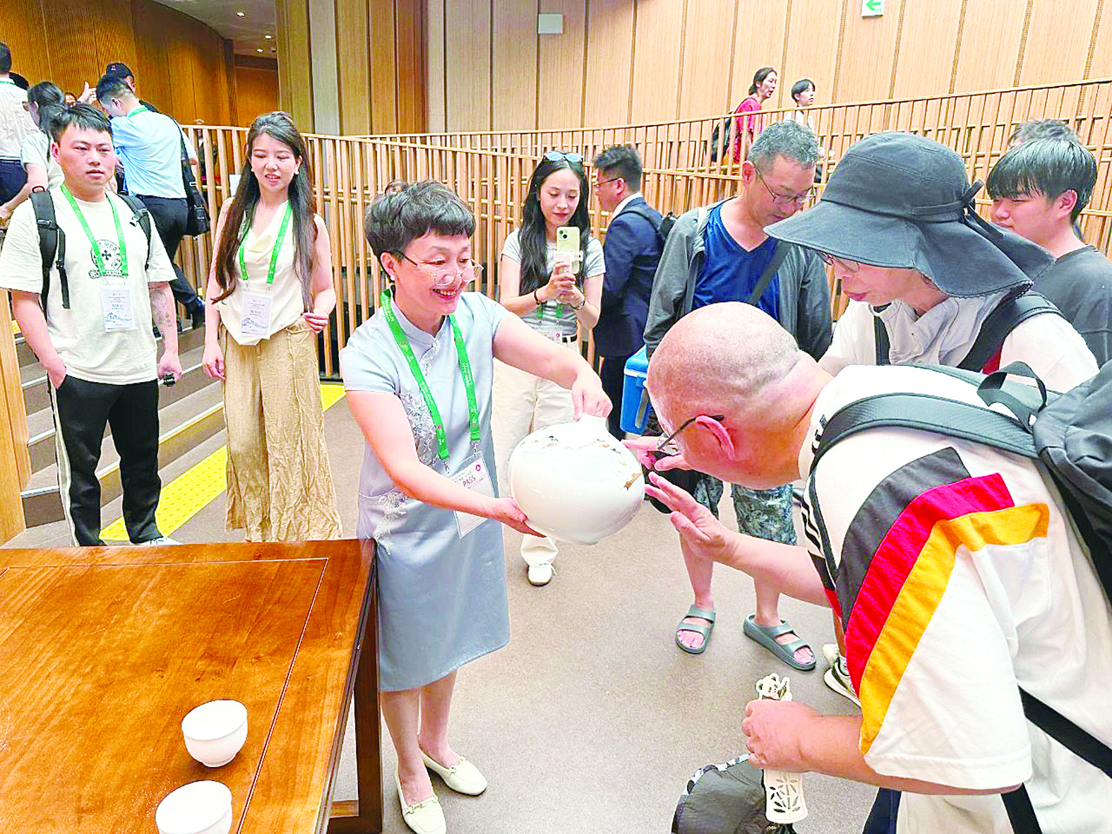 非遗技艺的展示犹如动态的文化交流。陈利与黄永平通过现场教学,引导观众亲手触摸素坯、尝试勾线分水,让世界认识醴陵釉下五彩瓷。语言虽不通,但技艺的传递成功跨越了障碍。一位日本观众体验后赞叹:“从未见过如此精美的作品,轻薄光滑,与众不同。”