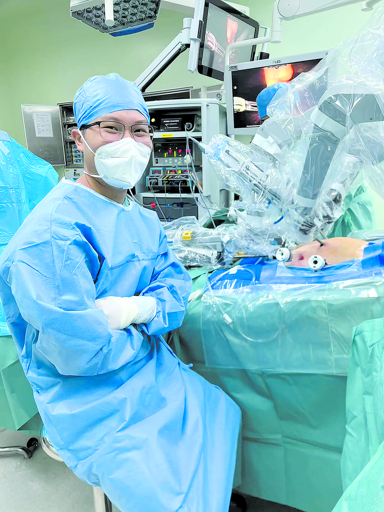 ▶谭文亮在外进修,学习达芬奇机器人。 受访者/提供