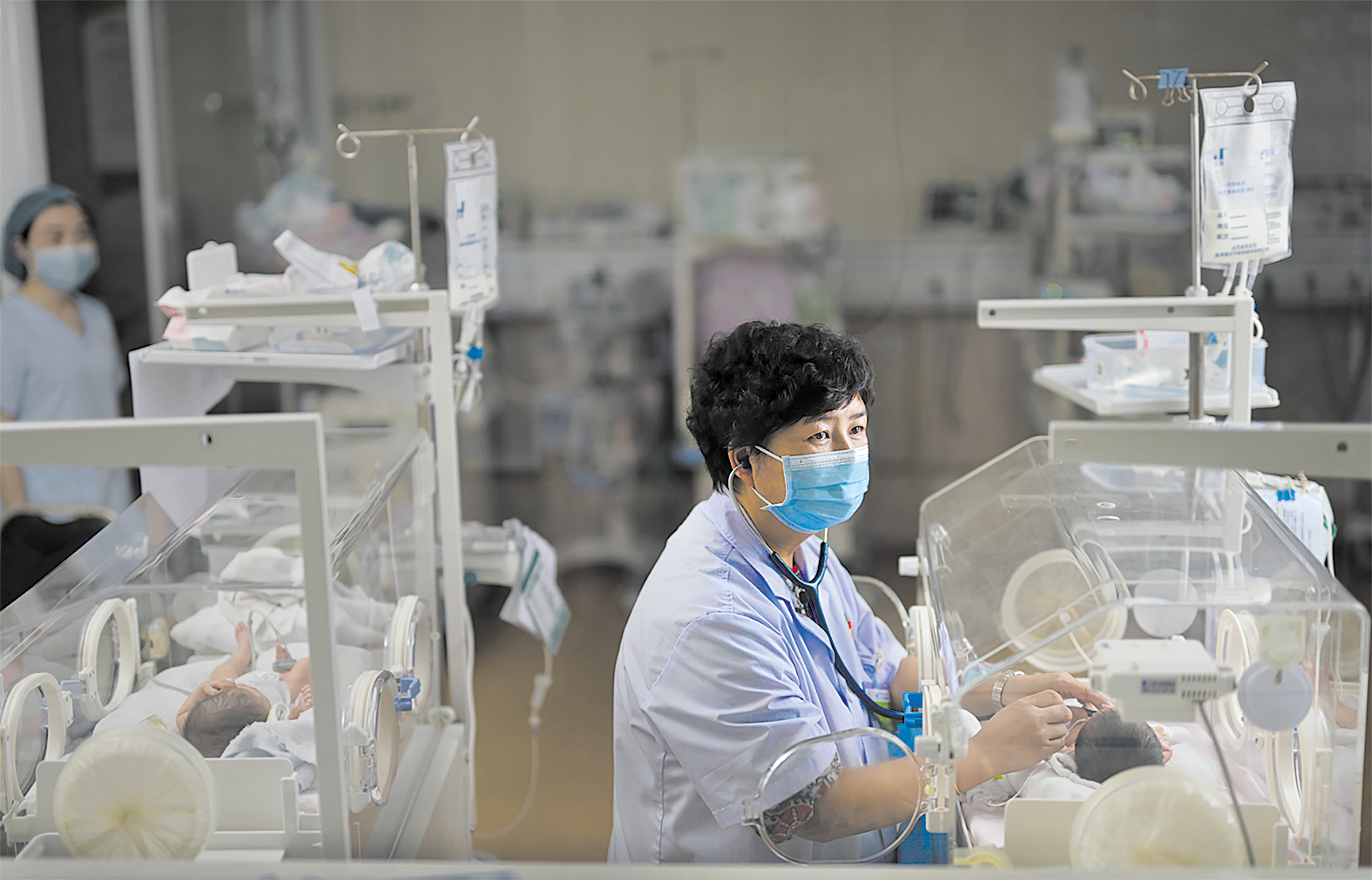 ◀纪青在NICU(新生儿监护病房)。 受访者/提供