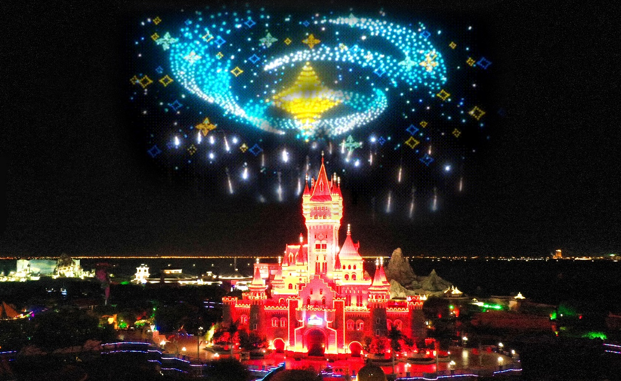 暑期旅游热潮持续。8月16日,方特梦幻王国9周年,株洲方特用3000架无人机点亮仲夏夜之梦,通过炫酷的空中表演呈现“九芒星轨”“电子风扇”等画面,为游客献上科技与趣味交织的视觉盛宴。