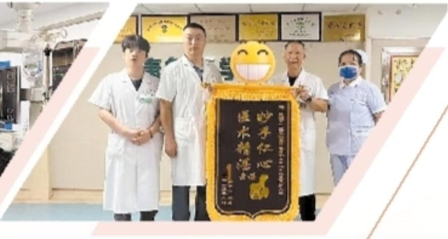 脑梗患者在康复医学科成功摆脱轮椅,为团队送来锦旗。 通讯员 供图