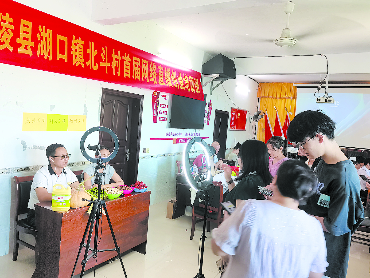 株洲日报讯(全媒体记者/何春林 通讯员/周志鹏 董智颖) “家人们,这里是湖南省株洲市湖口镇北斗村,这里的藤茶纯野生、无污染,欢迎下单……”8月18日,茶陵县湖口镇北斗村首期网络创业直播培训现场,村民通过网络直播推销着家乡特产。