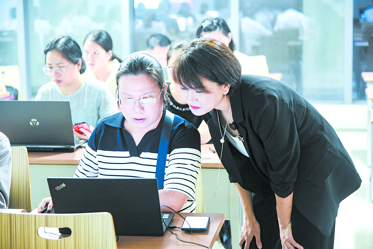 职工夜校AI智能办公培训班,职工在学习。通讯员 供图