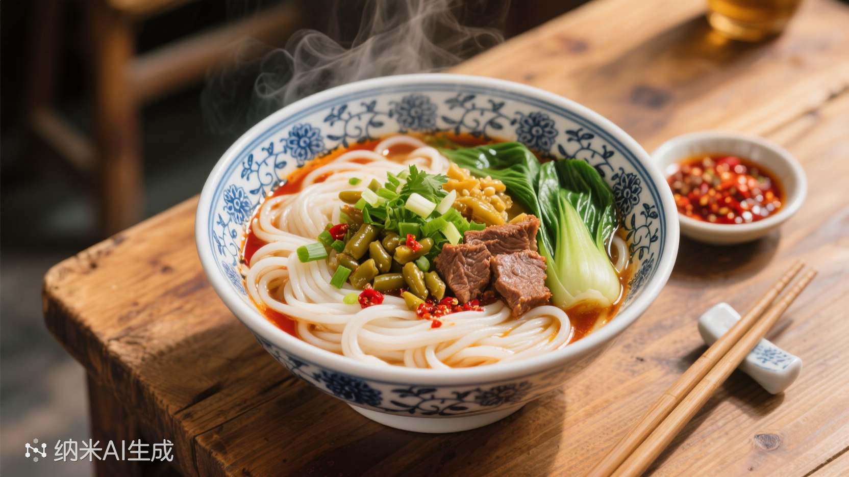 一根根米粉好像发丝一样拌在一起,水葱与大蒜被切成小段拌了进去,一些被油烧糊了的辣椒碎零零地躲在其中。我用筷子一翻,就翻出了几块肉丁,长的、宽的、瘦的、肥的,咬进嘴里却是软软的,甜甜的,还有一种辣味。并不是辣椒籽,而是小小的姜末,如在汤里潜藏的精灵,竟让我发现了它。