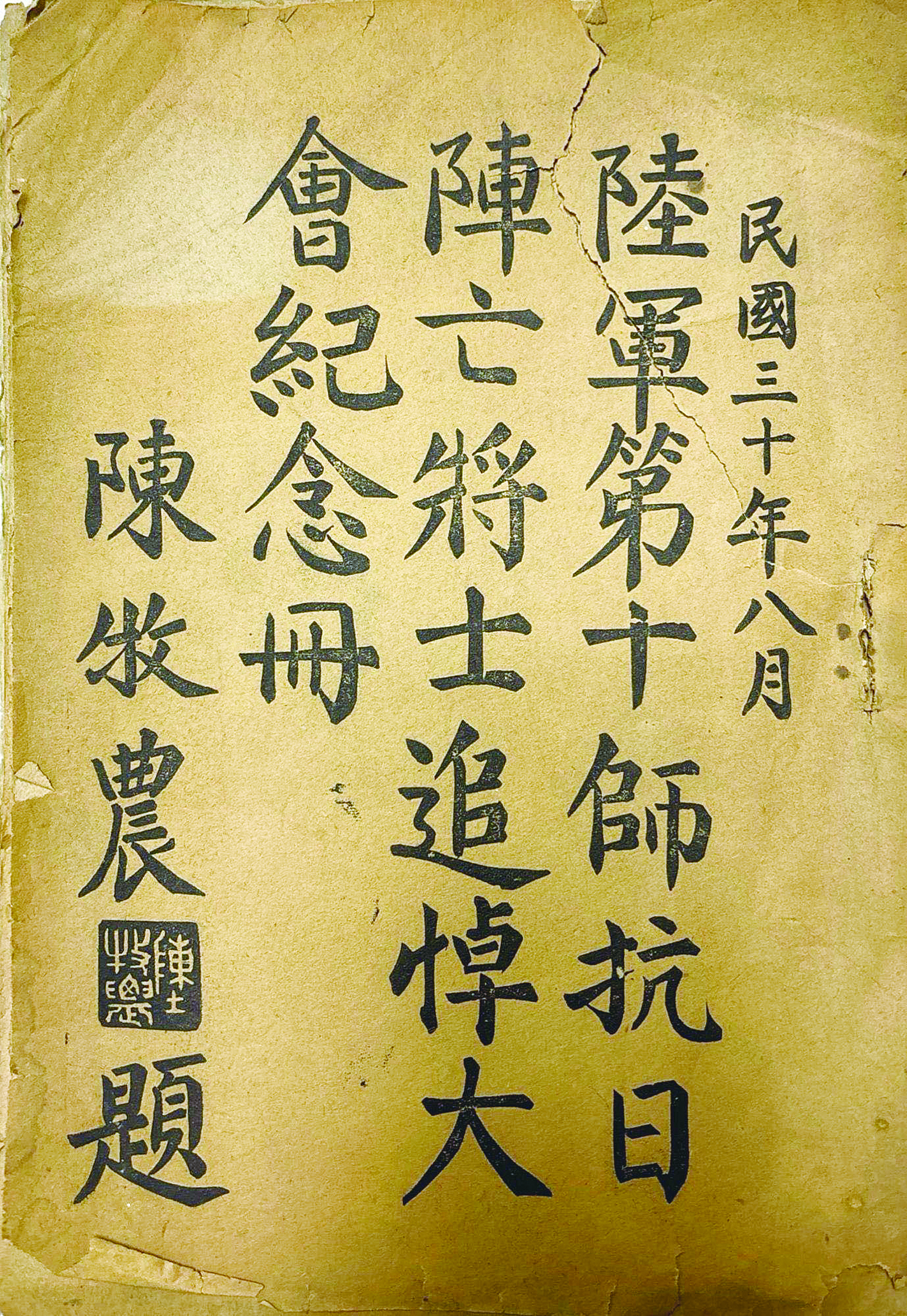 陆军第十师抗日阵亡将士追悼大会纪念册封页。醴陵市档案馆供图