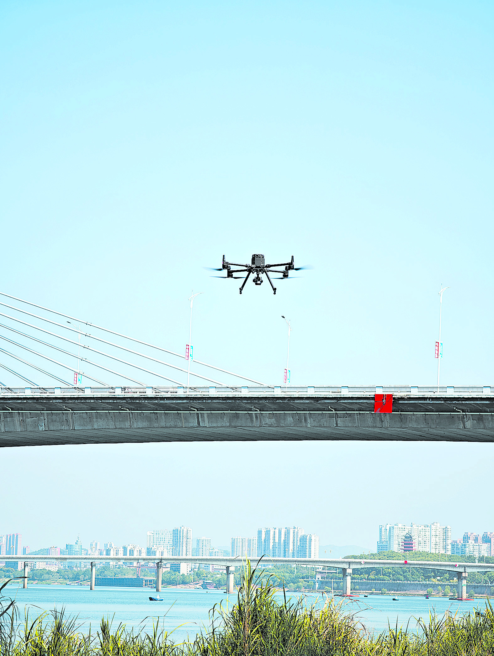 无人机在巡检天元大桥。 记者/肖星平 摄