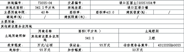 T2025-04:(1)须按照株洲市渌口区自然资源局2025年8月20日出具的《用地规划技术指标核定通知书》及蓝线图实施。(2)竞得人在成交后10个工作日内签订《国有建设用地使用权出让合同》,合同签订之日现状交地。(3)出让过程中相关用地矛盾由竞得人及渌口镇人民政府共同协调处理。