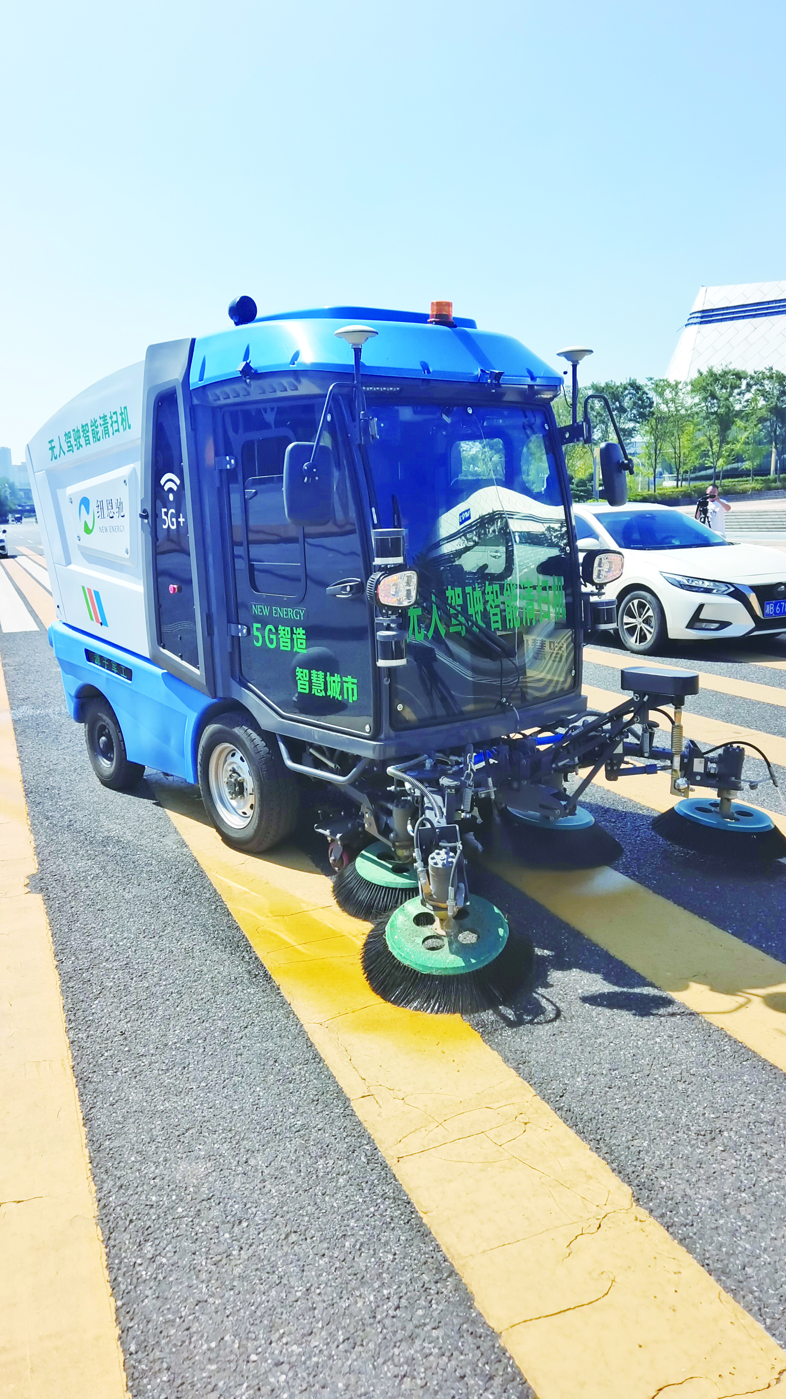 “我们每一台无人驾驶智能清扫机都搭载了北斗系统,可以解决定位精确度、可靠性以及安全性问题。”纽恩驰副总经理、联合创始人阳衡博士介绍,北斗赋能的无人驾驶智能清扫车,具有自主避障、自主识别垃圾等功能,实现全过程自主无人作业,跟传统车辆相比,环卫作业模式效率可以提升20%以上,整个综合运营成本可降低近20%。