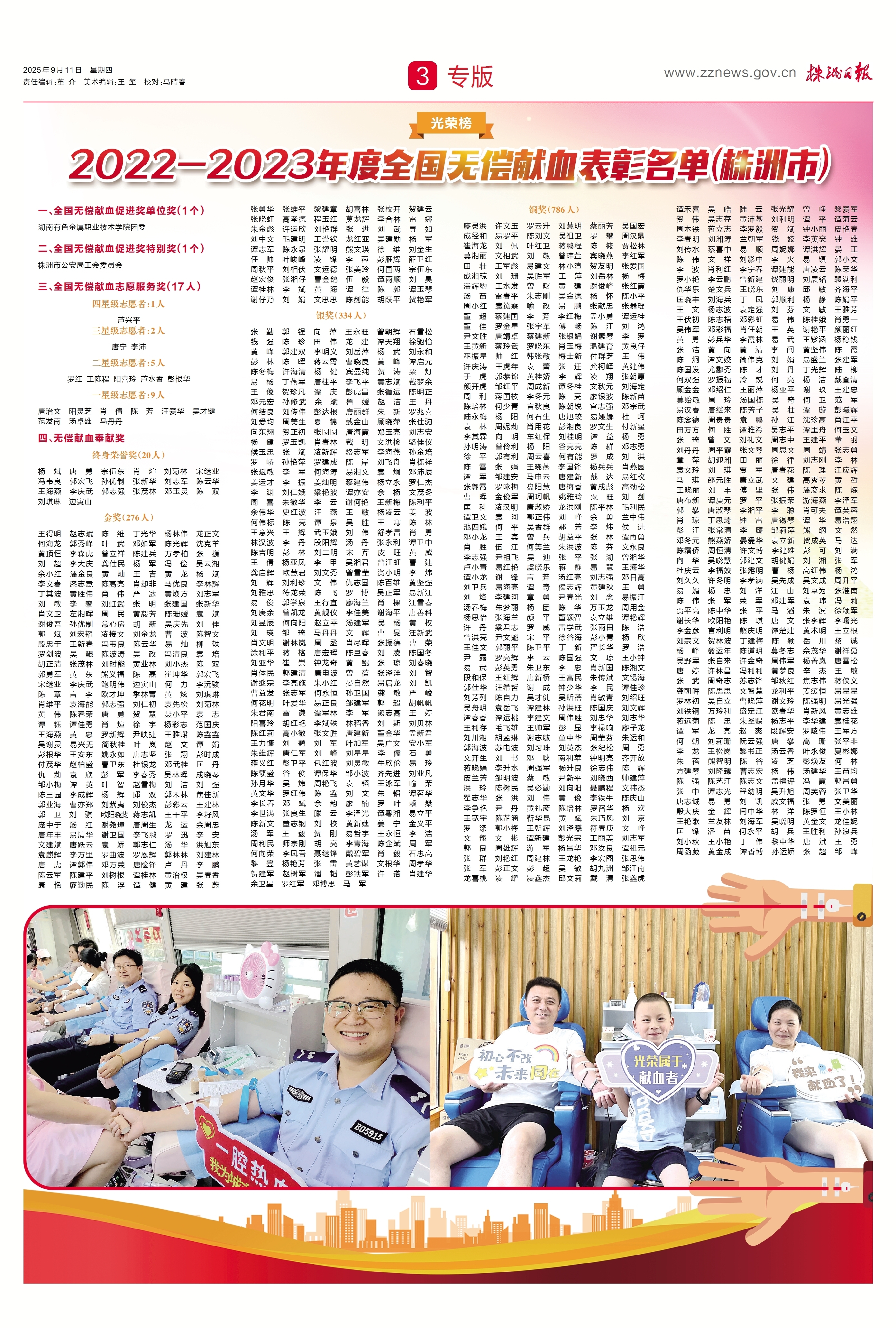 2022-2023年度全国无偿献血表彰名单(株洲市)