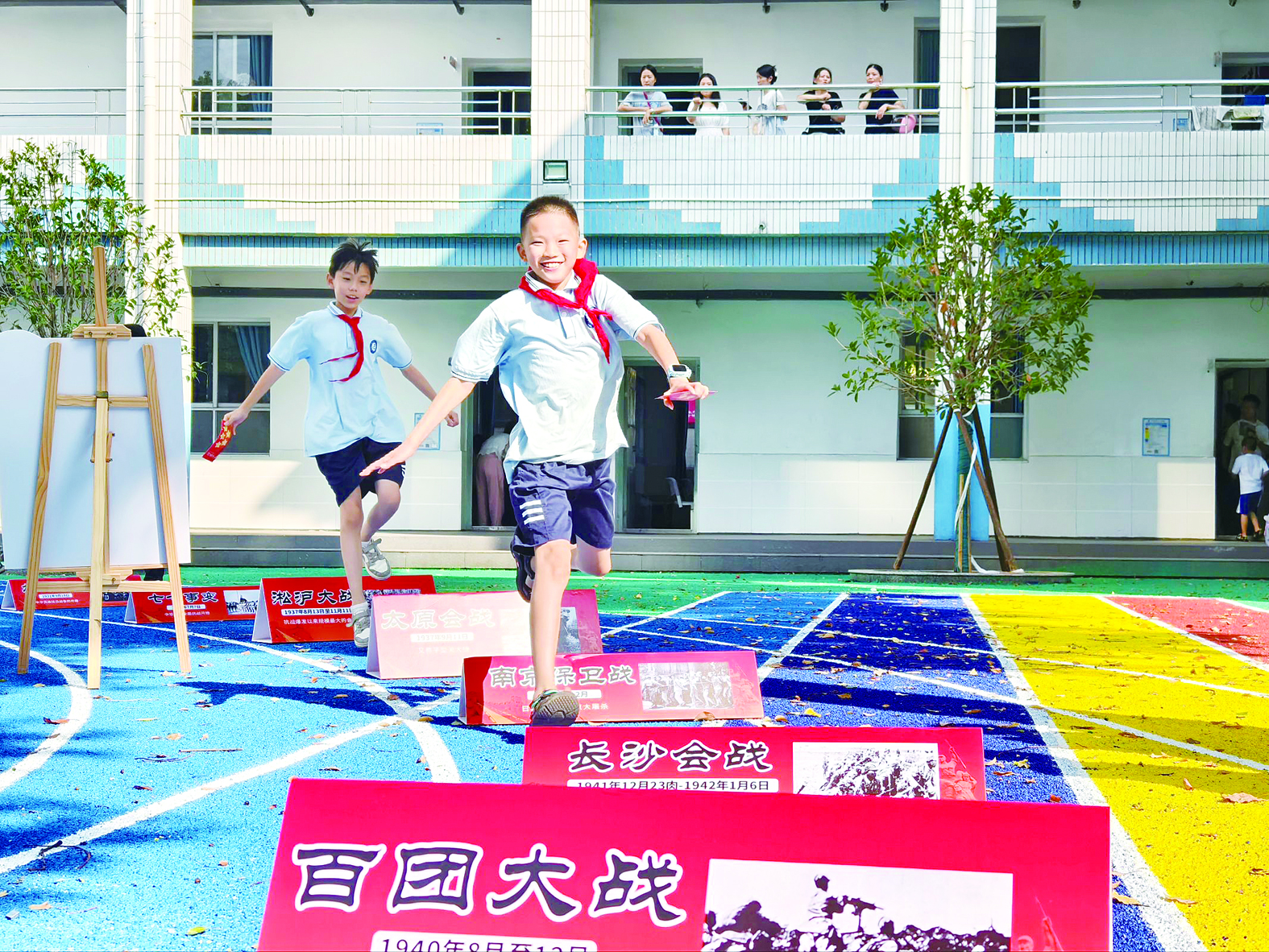 芦淞区立人学校,学生们跨过抗日战争“重大战役”开启新学期。受访单位供图