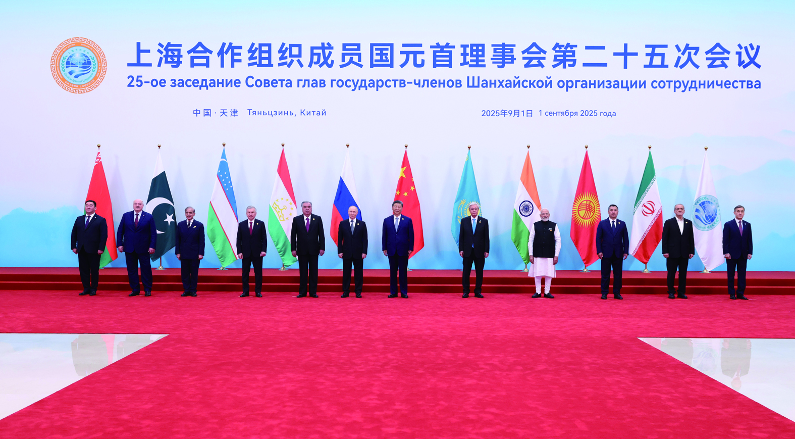 9月的天津,秋高气爽。梅江会展中心外,与会各国国旗、上海合作组织会旗迎风飘扬。上海合作组织2024-2025年轮值主席国徽标格外醒目。