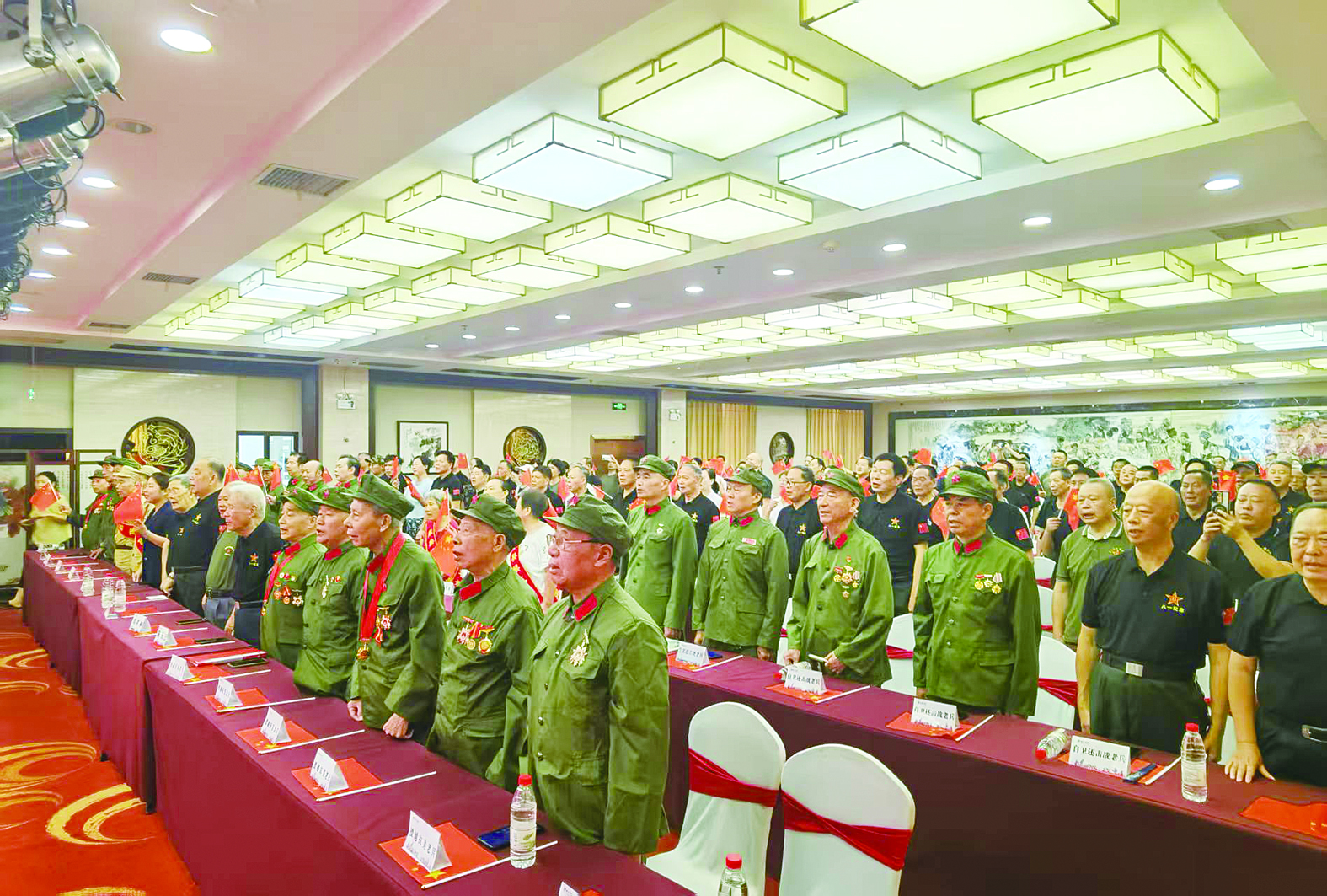 两代军人的时空对话。在市退役军人事务部门的组织下,干部职工、徐家冲军休所离退休干部、功臣模范、烈士遗属、转业军官、退役士兵一起观看直播。当新型装备方队亮相时,老兵们集体起立敬礼。当看到视频画面中接连出现的新装备时,老兵们感慨国防事业的发展日新月异。“我们当兵修工事全靠肩扛手提,哪有这么好的装备!”“不敢想,现在的装备已经发展到这样的程度!”当天,在西苑宾馆,来自天元区的老兵们身着军装观看阅兵,升国旗环节,老兵们整齐划一地起立、行军礼。在荷塘区退役军人事务局,集中收看直播的退役军人、烈士遗属挥舞着国旗,多位参战老兵激动流泪,直呼“了不起”。