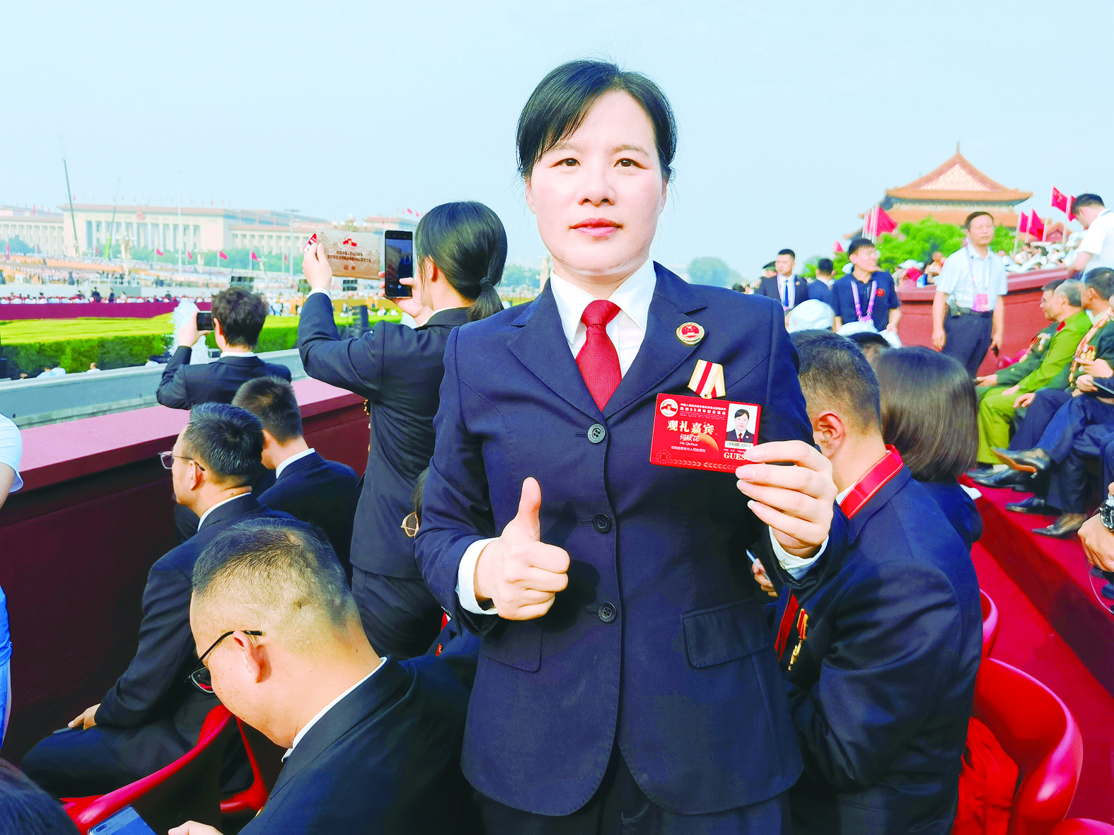 廖丽萍:站在观礼台上,倍感自豪