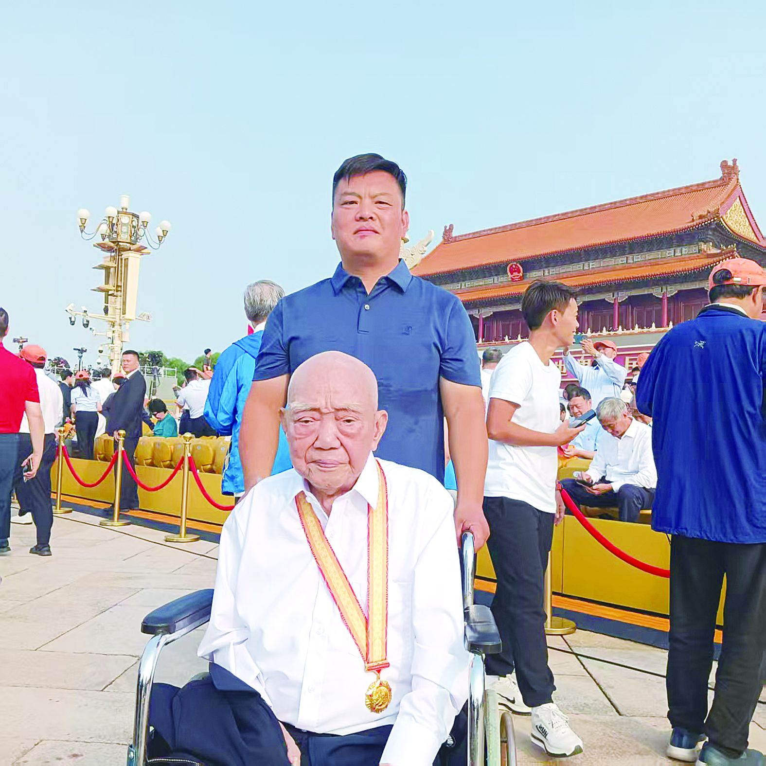 9月3日上午,纪念中国人民抗日战争暨世界反法西斯战争胜利80周年大会在北京天安门广场隆重举行。芦淞区101岁抗战老兵袁寿春,全国劳模、全国巾帼建功标兵、国网株洲供电公司高级工程师廖丽萍,醴陵籍开国上将陈明仁之孙陈湘生,醴陵市人民检察院党组副书记、副检察长何秋花,醴陵籍女企业家、贵州黄红缨茶叶有限公司董事长黄红缨受邀在天安门广场现场观礼。