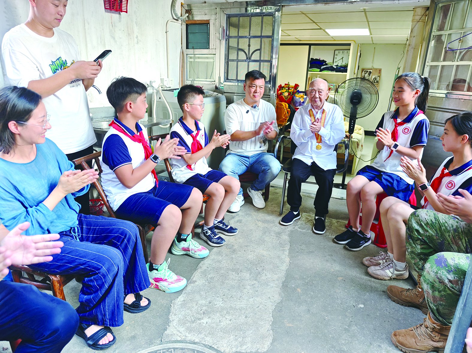 “回来了,袁老回来了。”9月4日下午5时许,家住芦淞区龙泉街道前往北京观礼九三阅兵的101岁抗战老兵袁寿春回到家中,就被亲朋好友“包围”了。