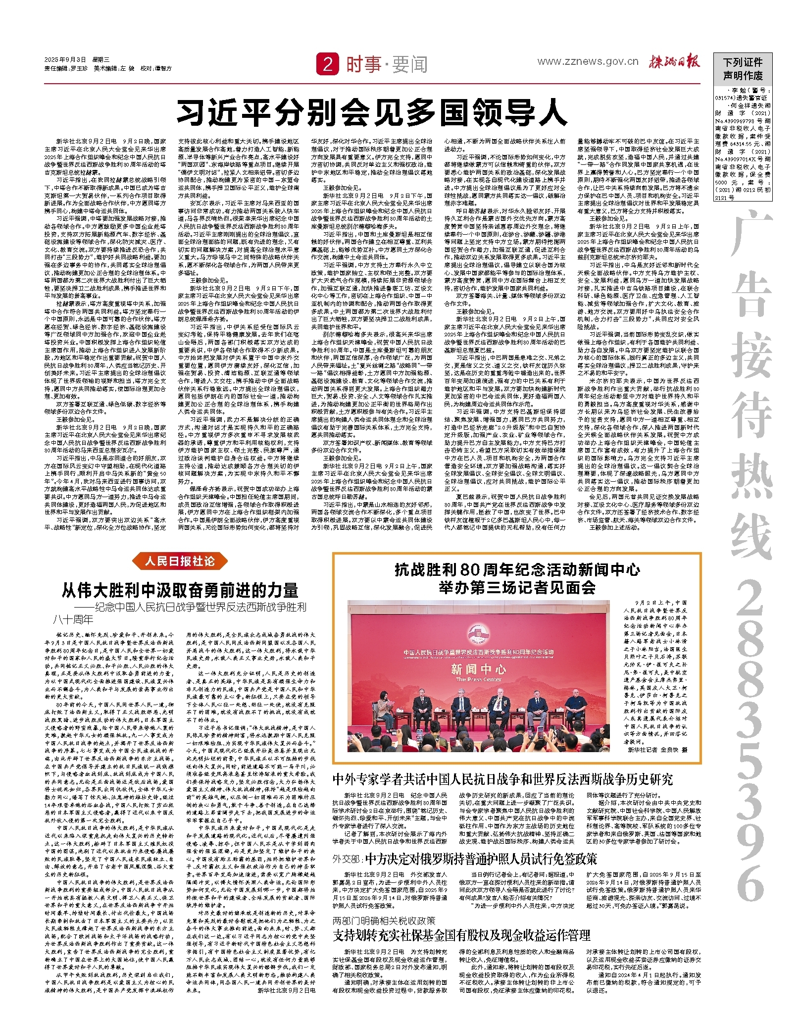 新华社北京9月2日电 9月2日下午,国家主席习近平在北京人民大会堂会见来华出席2025年上海合作组织峰会和纪念中国人民抗日战争暨世界反法西斯战争胜利80周年活动的伊朗总统佩泽希齐扬。