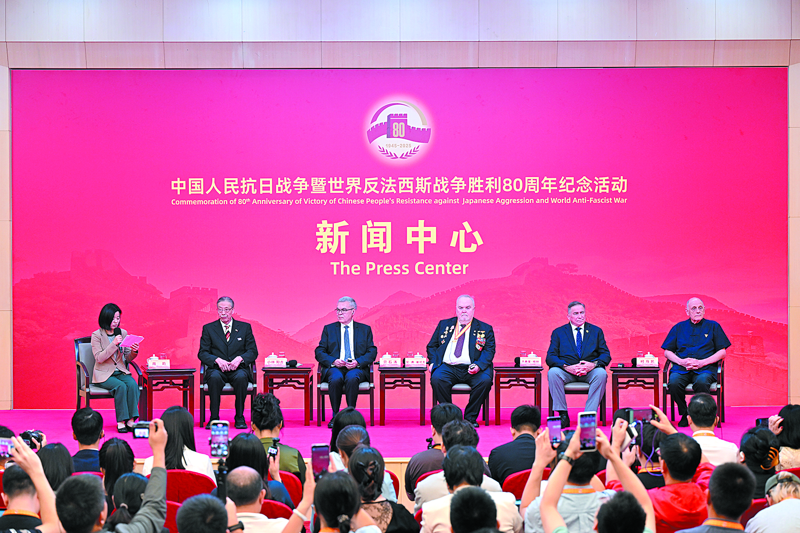 9月2日上午,中国人民抗日战争暨世界反法西斯战争胜利80周年纪念活动新闻中心举办第三场记者见面会,日本籍八路军老战士小林清之子小林阳吉,法国医生贝熙叶之子贝石涛,苏联元帅瓦·伊·崔可夫之孙尼·弗·崔可夫,美中航空遗产基金会主席杰弗里·格林,英国友人大卫·柯鲁克、伊莎白·柯鲁克之子柯马凯等为中国抗战胜利作出贡献的国际友人或其遗属代表介绍对中国人民抗日战争的认识等方面情况,并回答记者提问。