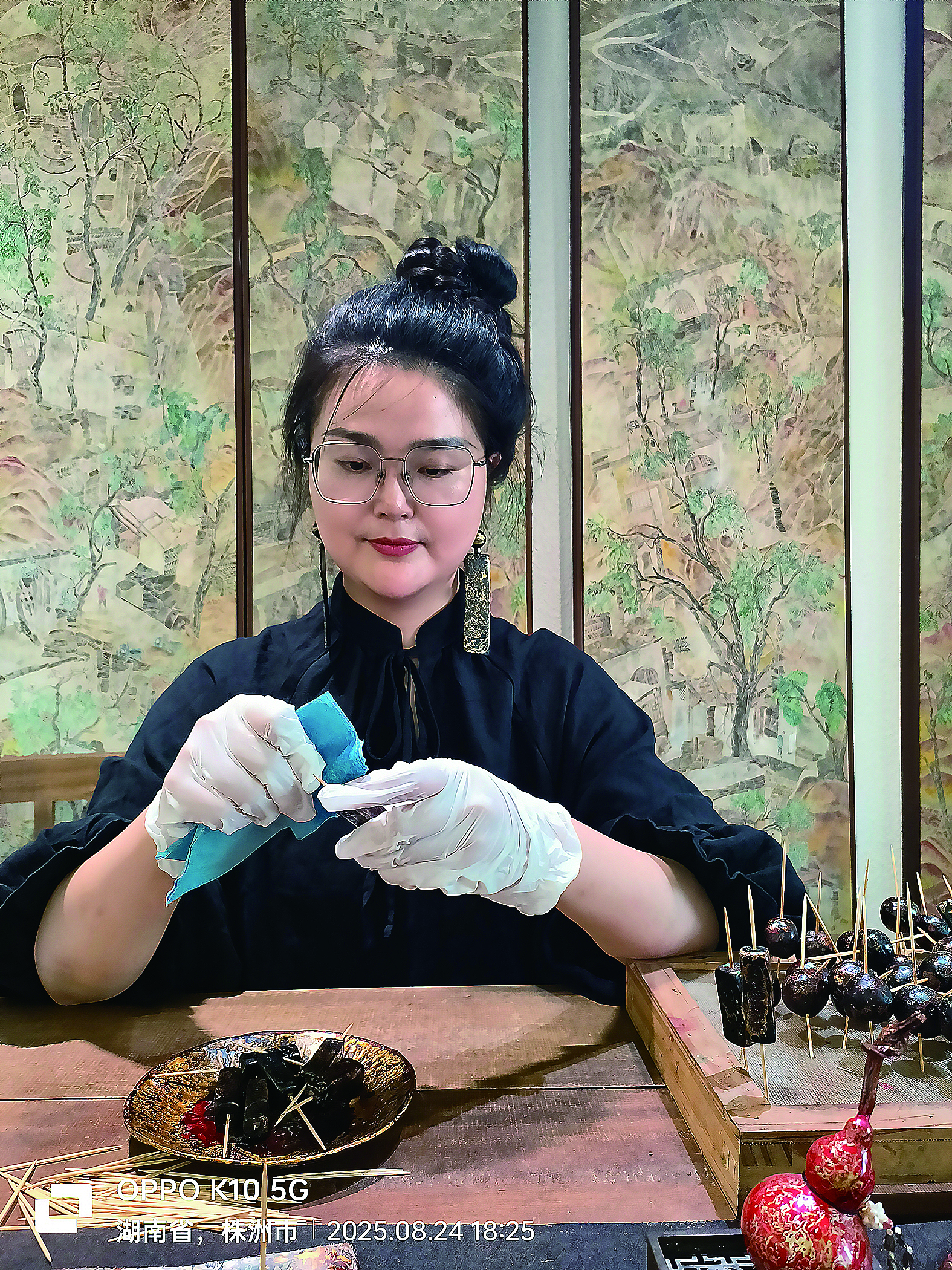 潘璐丹制作合香珠手串。 记者 易楚曈/摄