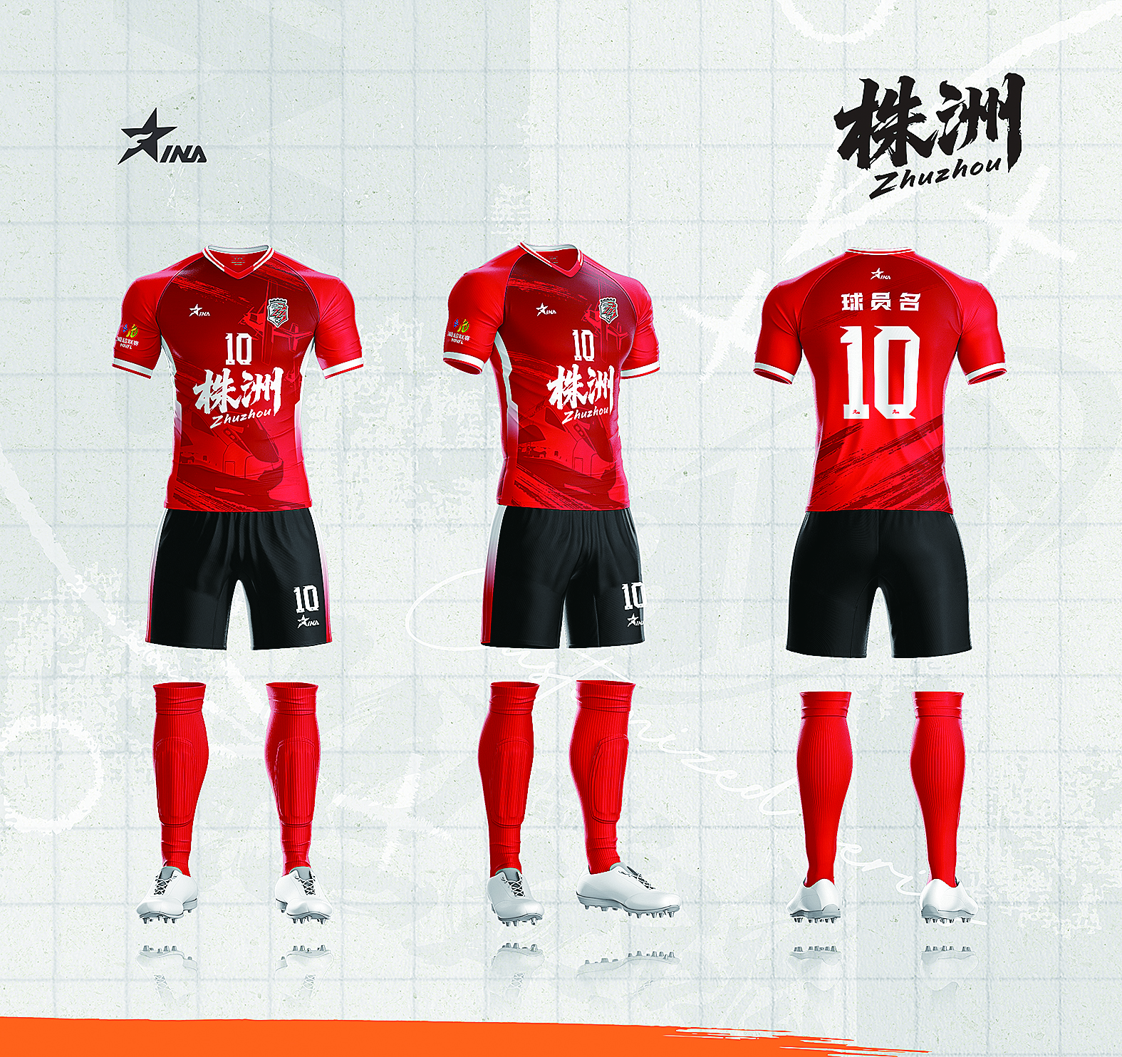 色彩方面,红色为主场队服,蓝色为客场队服,绿色与黄色则为守门员专属。红与黑的交织不仅体现了速度与力量的碰撞,也诠释了株洲人敢为人先、全力拼搏的地域性格与精神面貌。