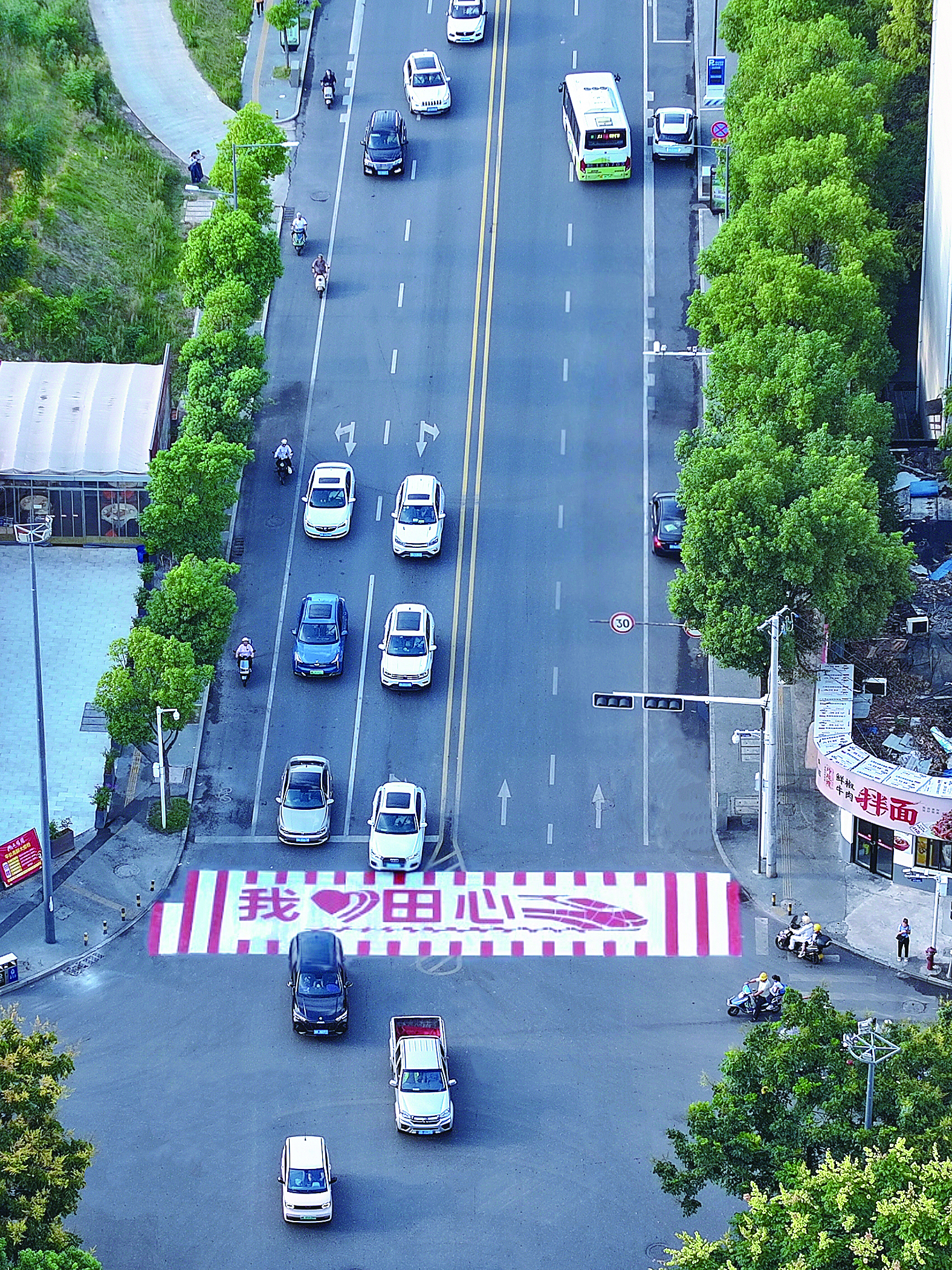 田心路与新民路交会处,彩色斑马线浪漫表白田心。通讯员 供图