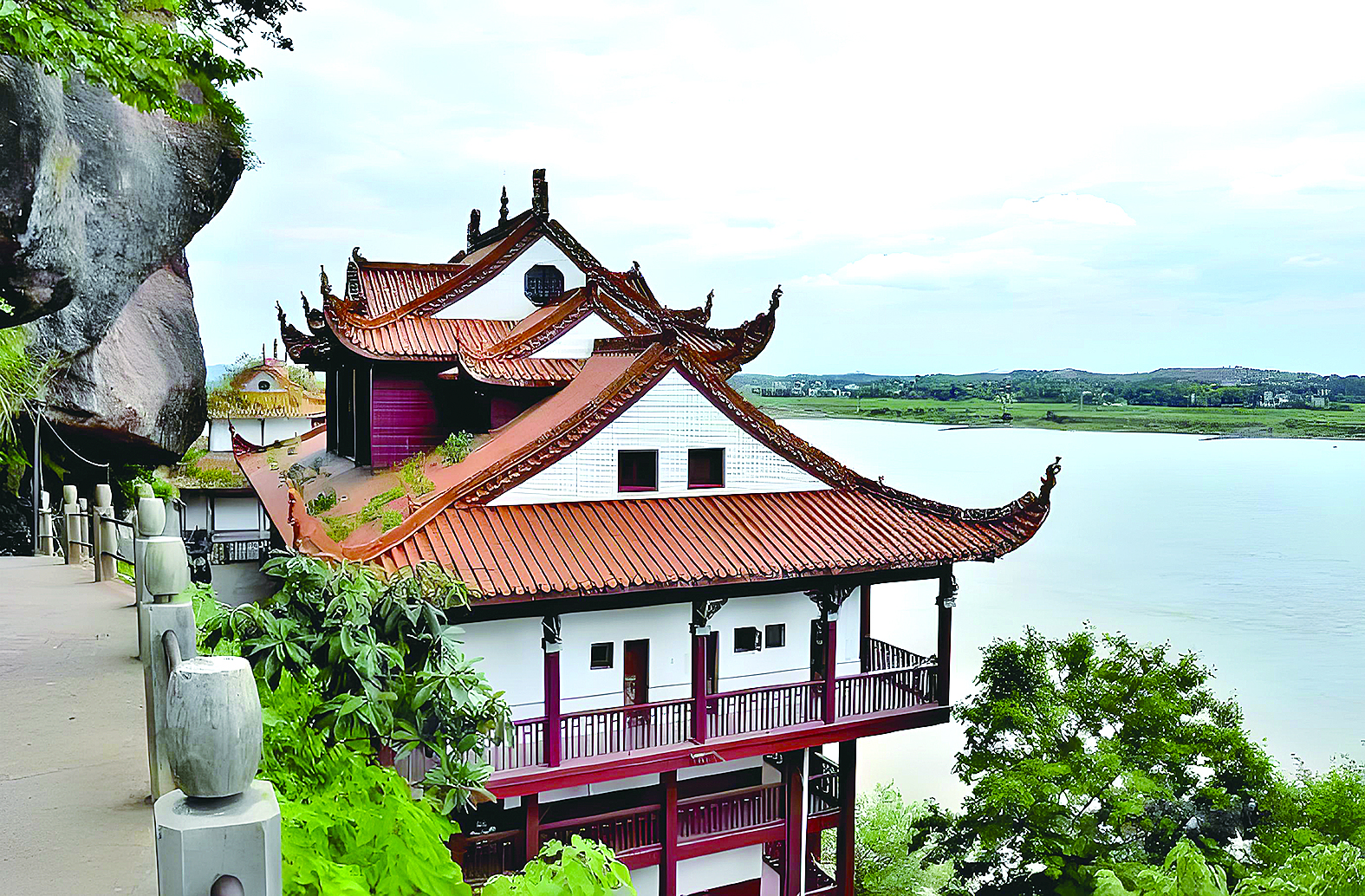 走出大雄宝殿,站在临江廊角远眺,江风正好翻卷着衣角。远处的水坝横在波心,像条银色的腰带;小岛卧在水面上,绿得像块翡翠;更远处的城市建筑,在水汽里朦胧成淡淡的剪影。孙女忽然靠过来,小手攥着我的衣角说:“爷爷,这里像幅画呢。”可不是嘛,江景与诗韵相融,古寺与新景对望,这趟夏日行,有祖孙三人的笑语,有山水人文的滋养,把个平凡的周末,过成了记忆里会发光的片段。