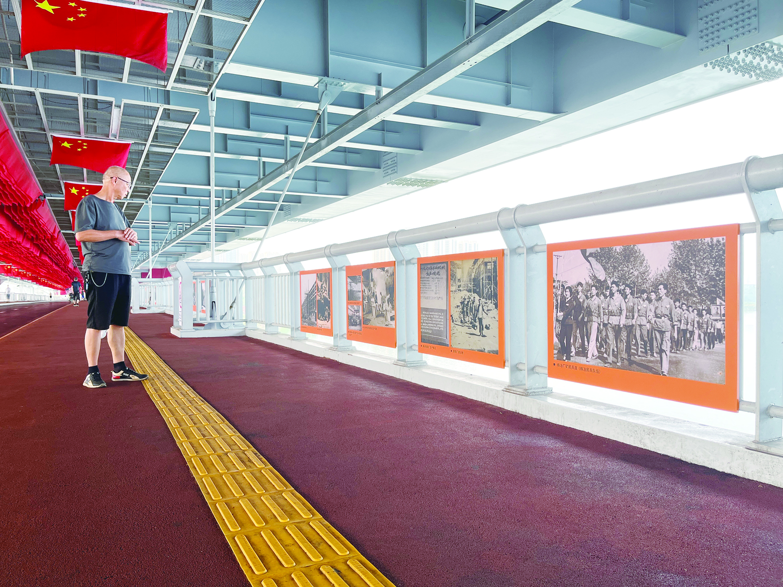 9月10日,新布置的图片展成为清水塘大桥(株洲八桥)景观通道上一大亮点,吸引市民驻足观看。该图片展由“火车拉来的城市”“新中国八大老工业基地”“全国第一株洲荣誉”“制造名城”“幸福株洲”等篇章组成,主要介绍株洲工业发展历程。