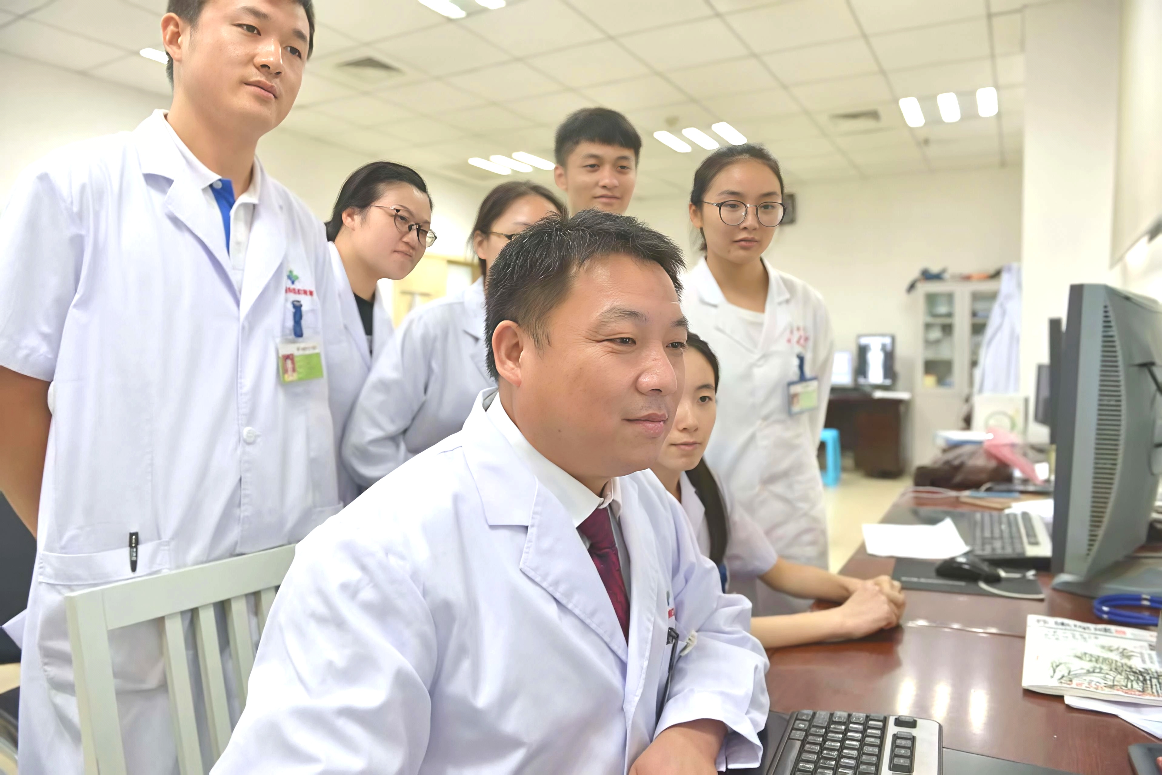 向老师的方言里藏着“铁规矩”。他常挂在嘴边的是“两个要求”——“制度要‘硬扎’(严格),人心要‘熨帖’(温暖)”,这也是科室连续四年获评“优秀住培基地”的秘诀。他制定的《放射科住培教学规范》被学员戏称为“向氏法典”:小讲课课件要提前三天“过他的眼”,病例讨论要“人人开口”,教学阅片要“挖到根里”。若谁在早读阅片时照本宣科,向老师便会当场用方言“敲警钟”:“你这报告写得像‘空心菜’——中看不中用!”