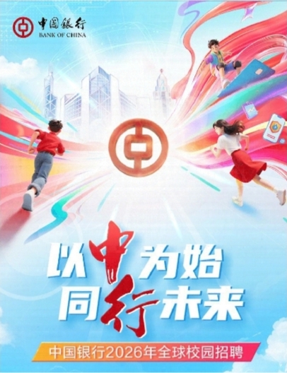 根据业务发展需要,中国银行启动2026年全球校园招聘,相关信息公告如下: