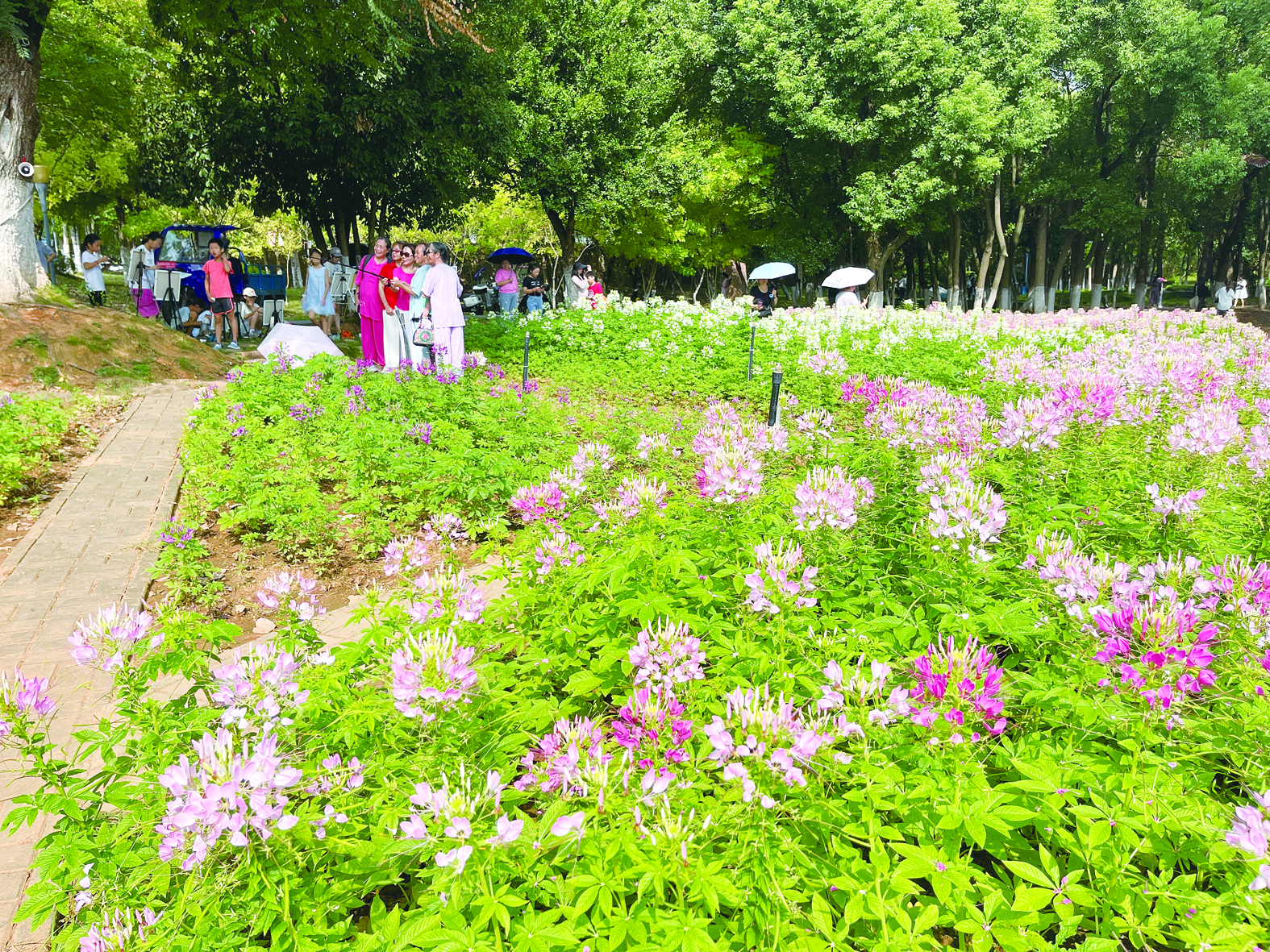 9月13日,位于河西湘江风光带钢琴广场旁的“花海”项目,醉蝶花盛开,吸引市民赏花、留影。市园林养护一所工作人员介绍,醉蝶花是湘江风光带在近两年引进的新品种,因花型独特、色彩绚丽,极具观赏性,其花期可持续到10月份,目前正值盛花期。