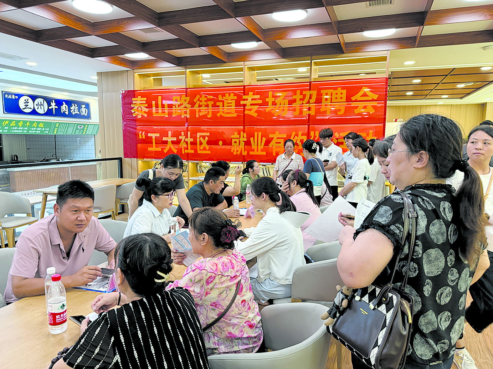 泰山路街道举办的湖南工业大学食堂招聘会,吸引了许多求职者。通讯员/供图