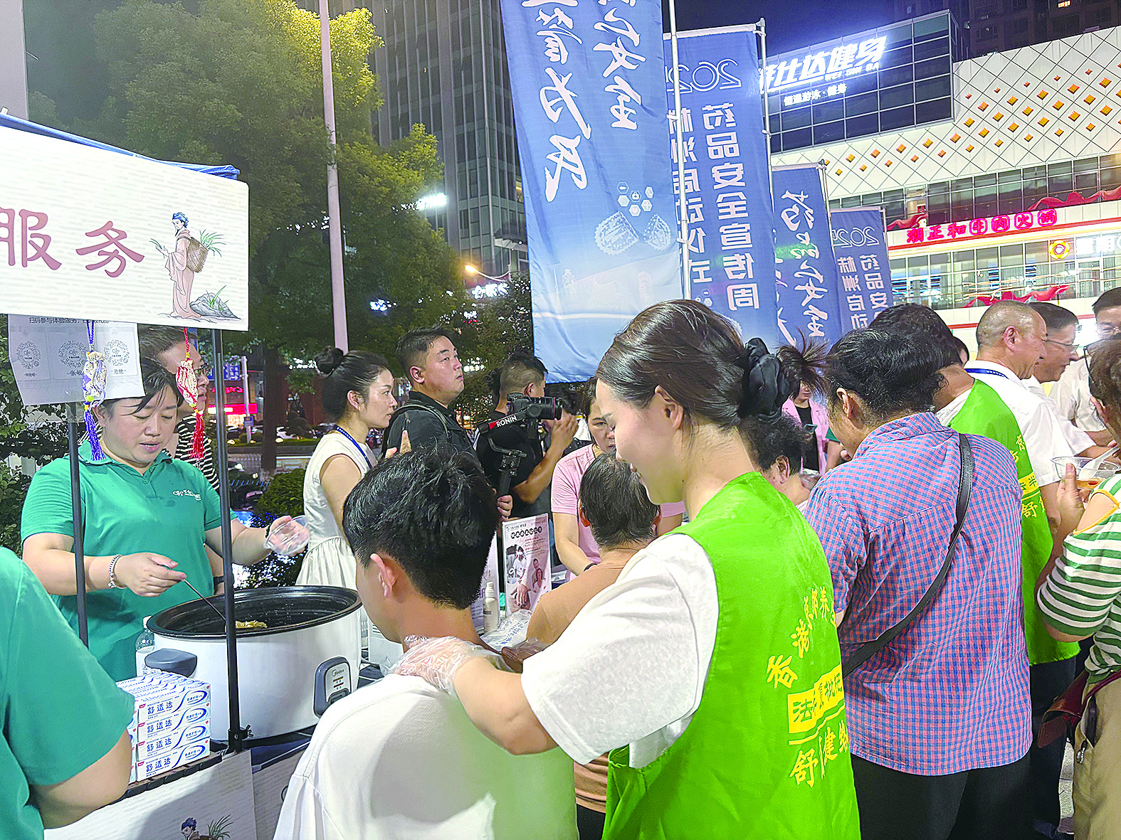 市民现场体验中医推拿。 株洲日报全媒体记者/文樱 摄