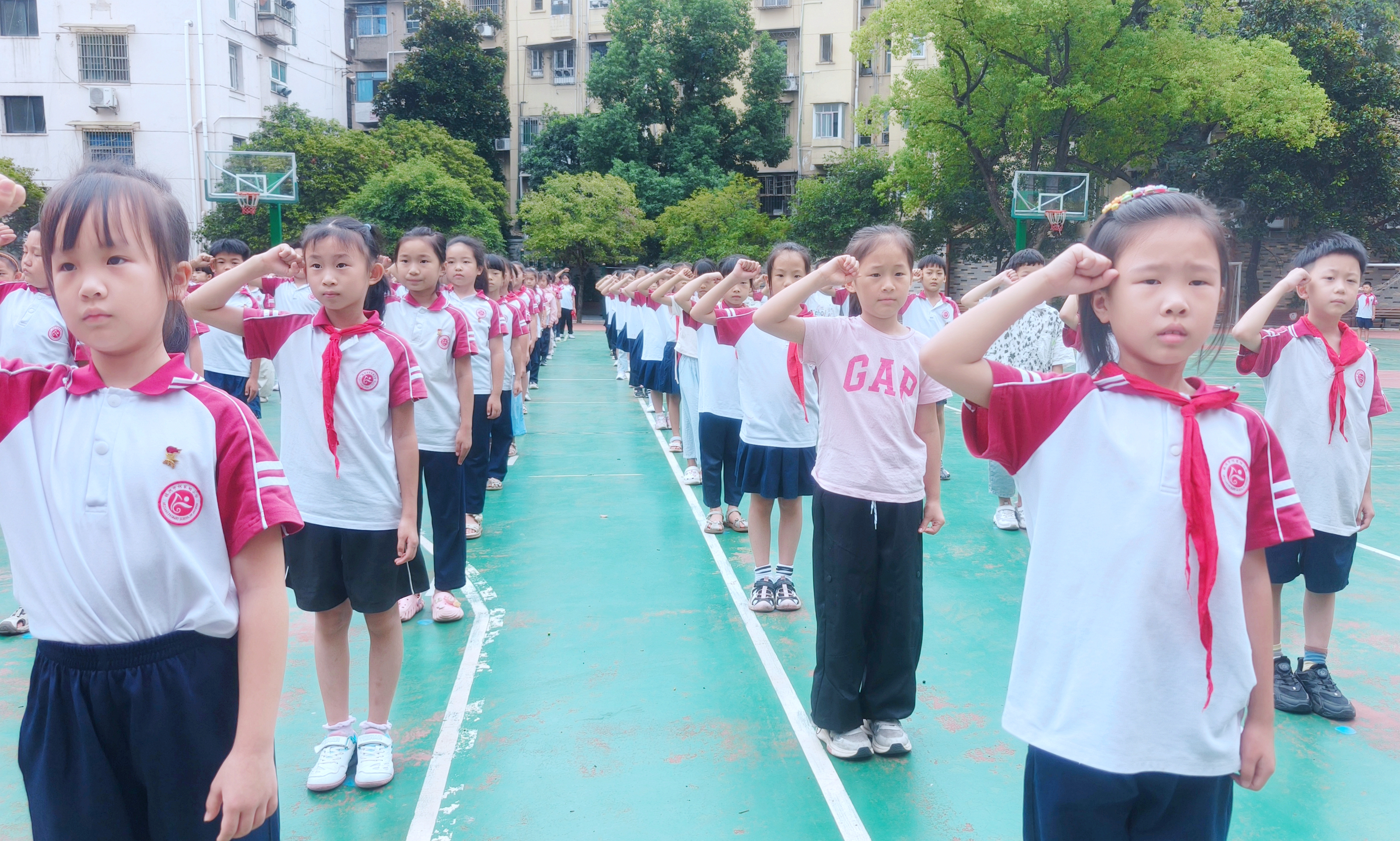 图为芦淞区何家坳小学学生在国旗下宣誓。