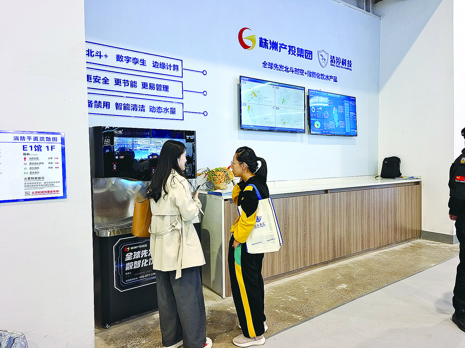 9月27日,株洲国际会展中心E1馆里人流如织。各大与北斗相关企业的高科技展台之外,5号出口附近的一台饮水机,同样因各种“高大上”的功能让人瞩目。