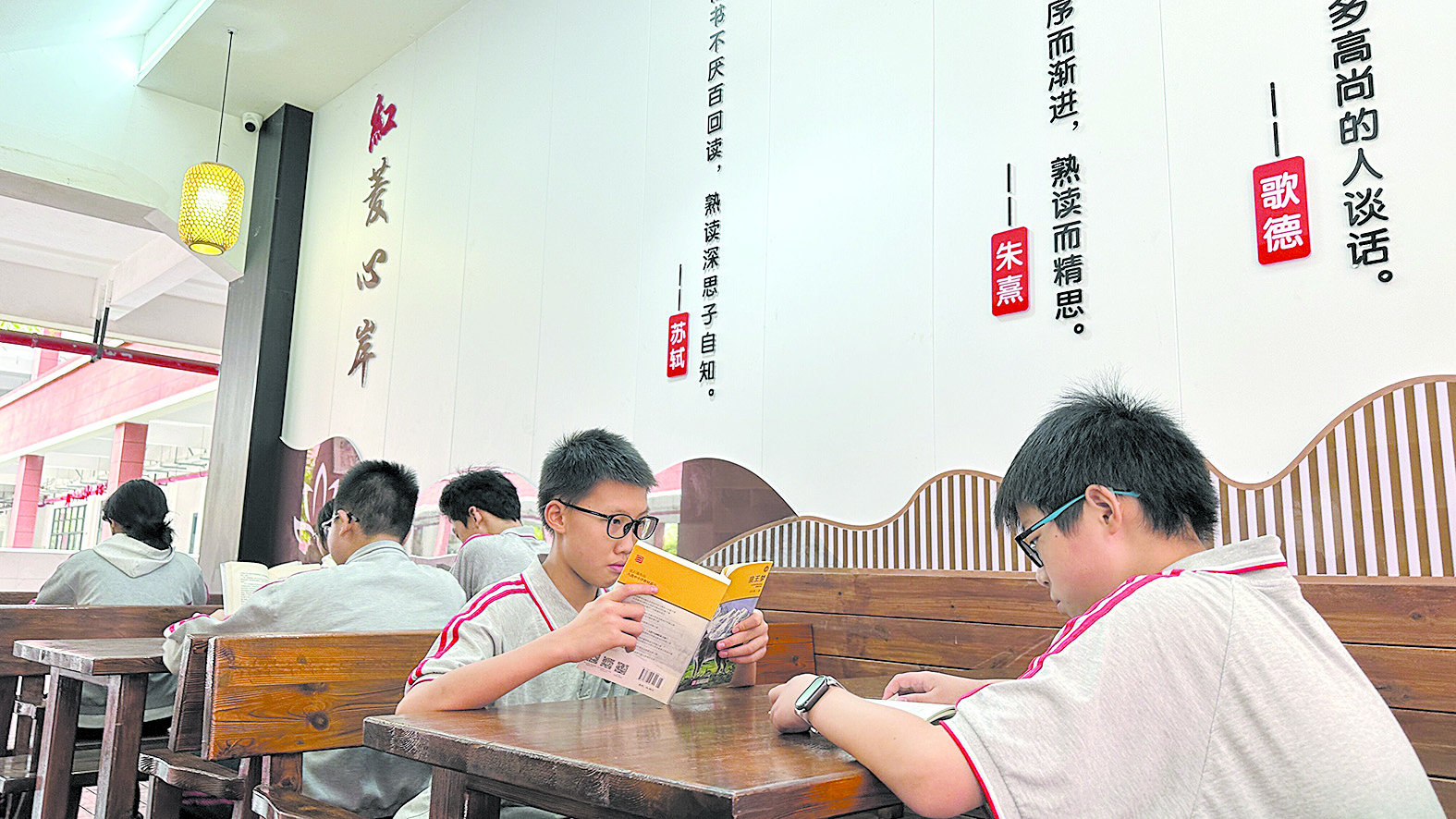 同学们在“红菱心岸”享受阅读的美好时光。 记者/戴凛 摄