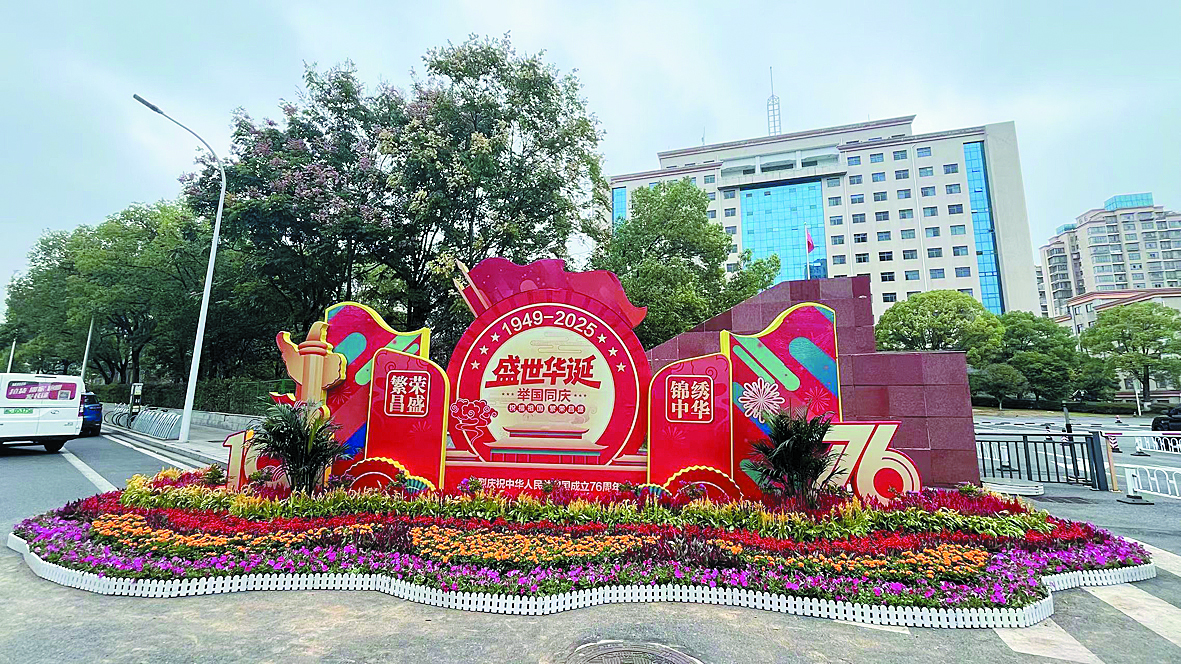 同世界,共北斗,庆国庆,迎中秋。为庆祝中华人民共和国成立76周年,大力营造喜庆、祥和的节日氛围,结合北斗峰会圆满召开,石峰区城管局以响石广场为中心,在建设北路、响田西路等主干道路灯悬挂600余面五星红旗。在石峰区人民政府门前、响石广场设置大型花卉景观,主要使用三角梅、散尾葵、矮牵牛、香彩雀、孔雀草、鸡冠花、一串红等花卉,累计使用花卉3万盆。响石广场渠化岛更换色彩鲜红的草花,象征伟大祖国欣欣向荣。