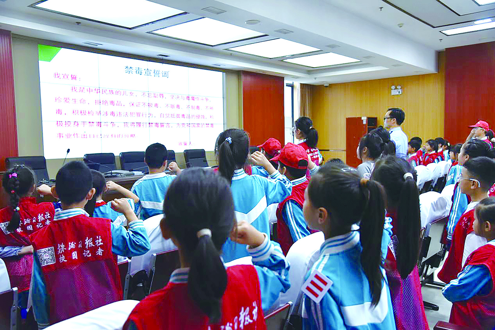 听完课,所有校园记者举起右拳,大声宣誓:“珍爱生命,远离毒品!”这声音,又响亮又坚定。
