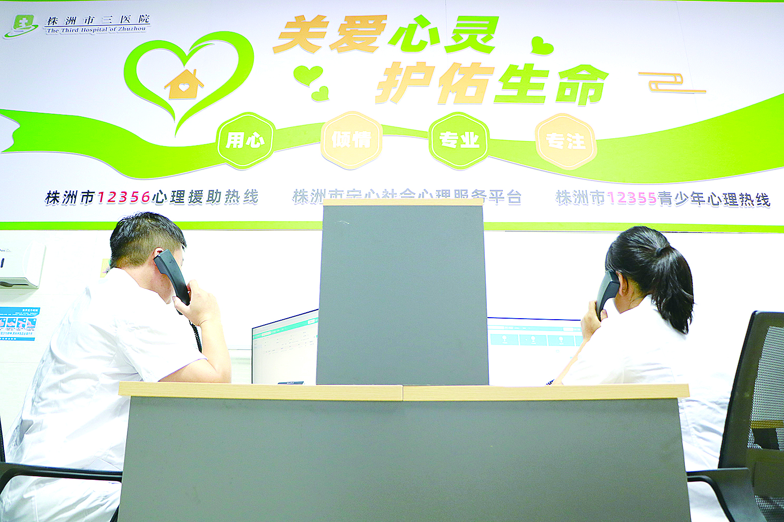 设在株洲市三医院内的“12356”全国心理援助热线办公室,由医院的资深心理医生团队24小时轮流值守