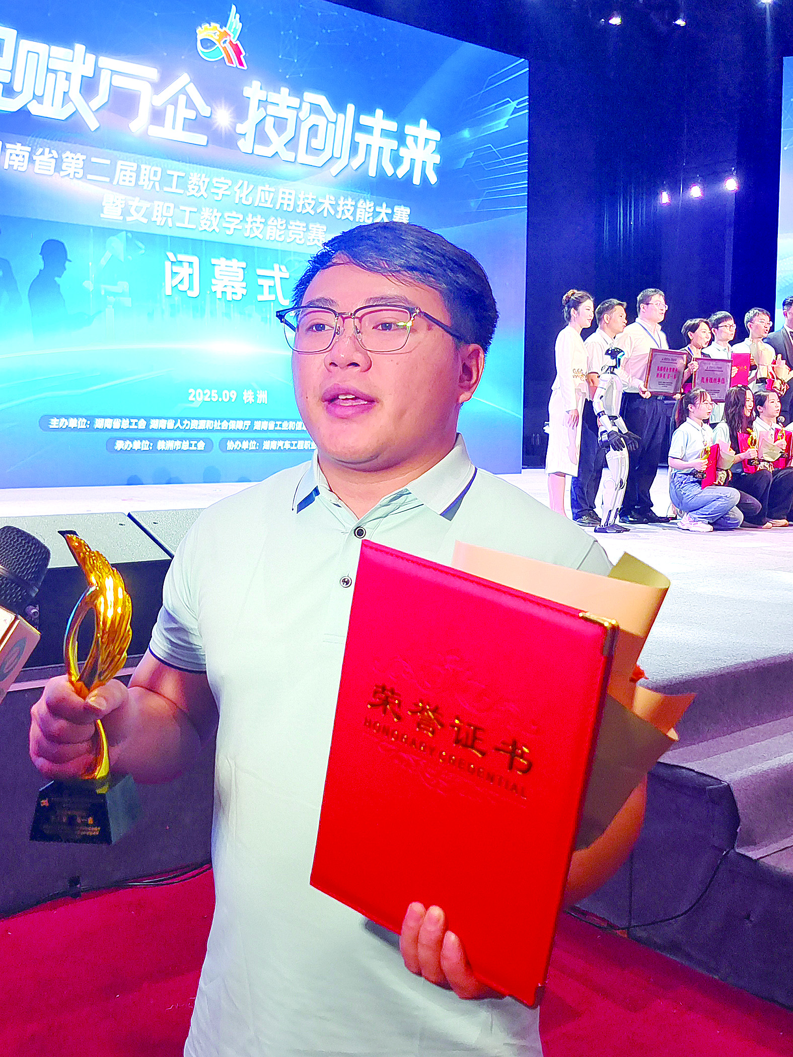 株洲日报讯(全媒体记者/何春林) 近日,“智赋万企·技创未来”湖南省第二届职工数字化应用技术技能大赛暨女职工数字技能竞赛决赛在我市举行。株洲代表队获得团体总分第一名,谢东仪斩获无人机装调检修工赛项冠军。