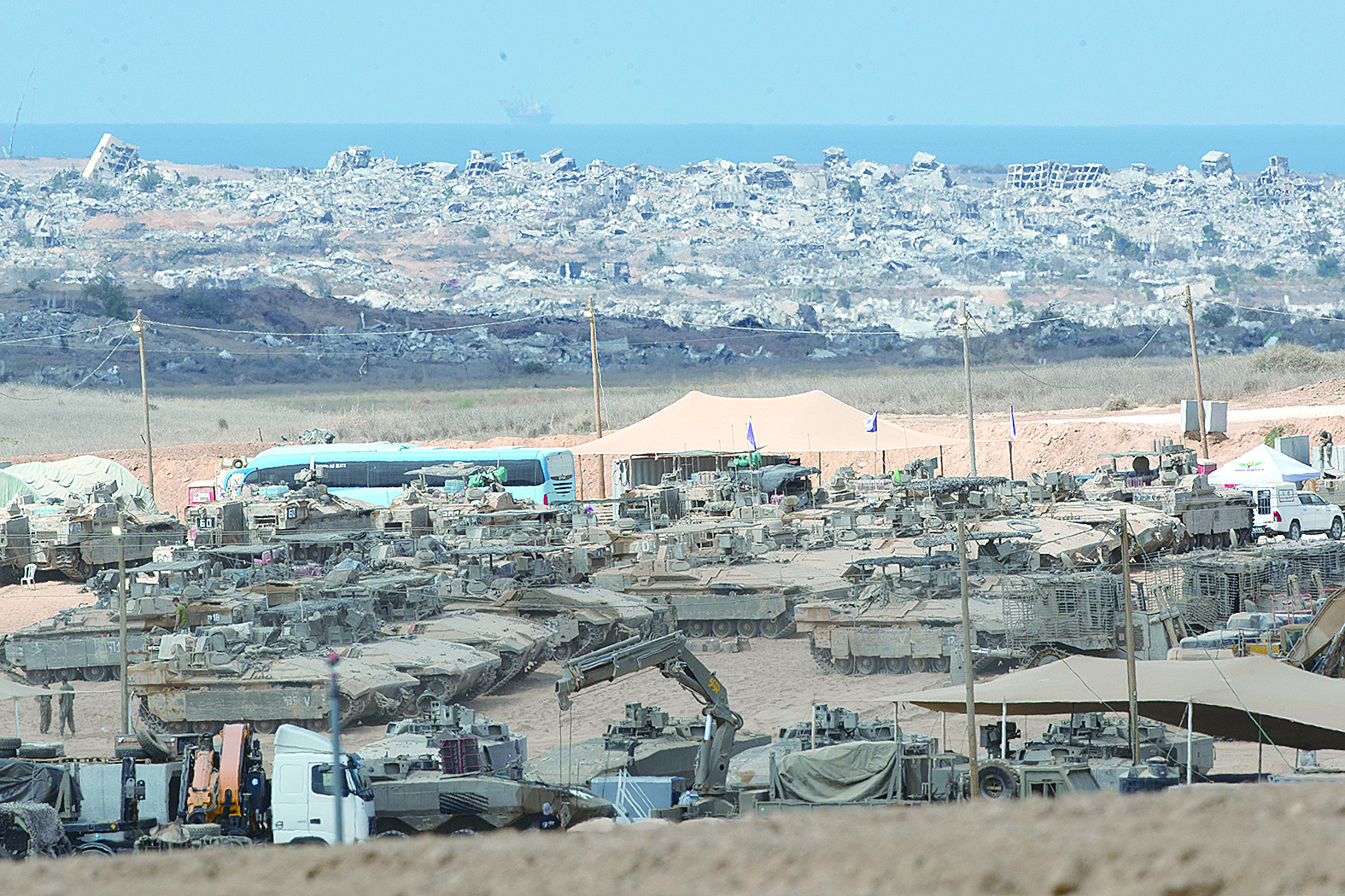这是10月10日拍摄的位于加沙边境的以军部队。 新华社记者 陈君清 摄