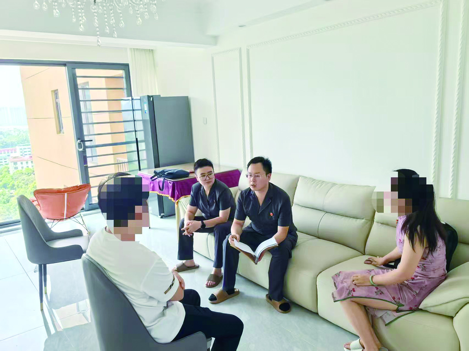 渌口法院执行局法官正在就一起探视权执行案开展协调。(通讯员供图)